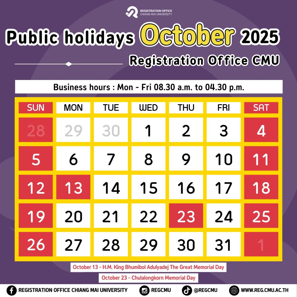 Public Holidays (October 2025) Registration Office, Chiang Mai University