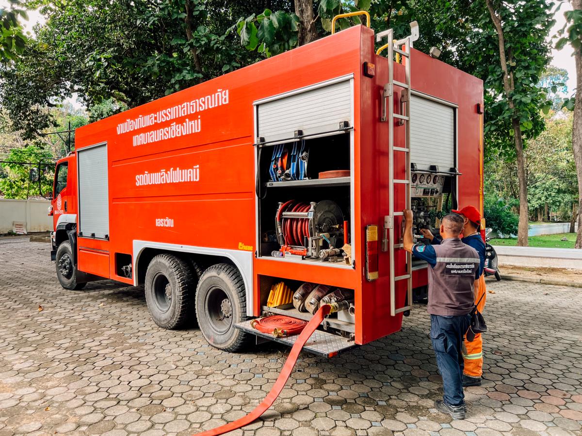 Firefighting equipment, tools, and extinguishing planning (by instructors from Chiang Mai Municipality)