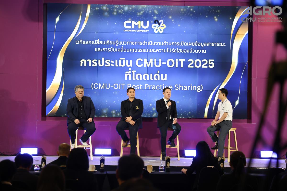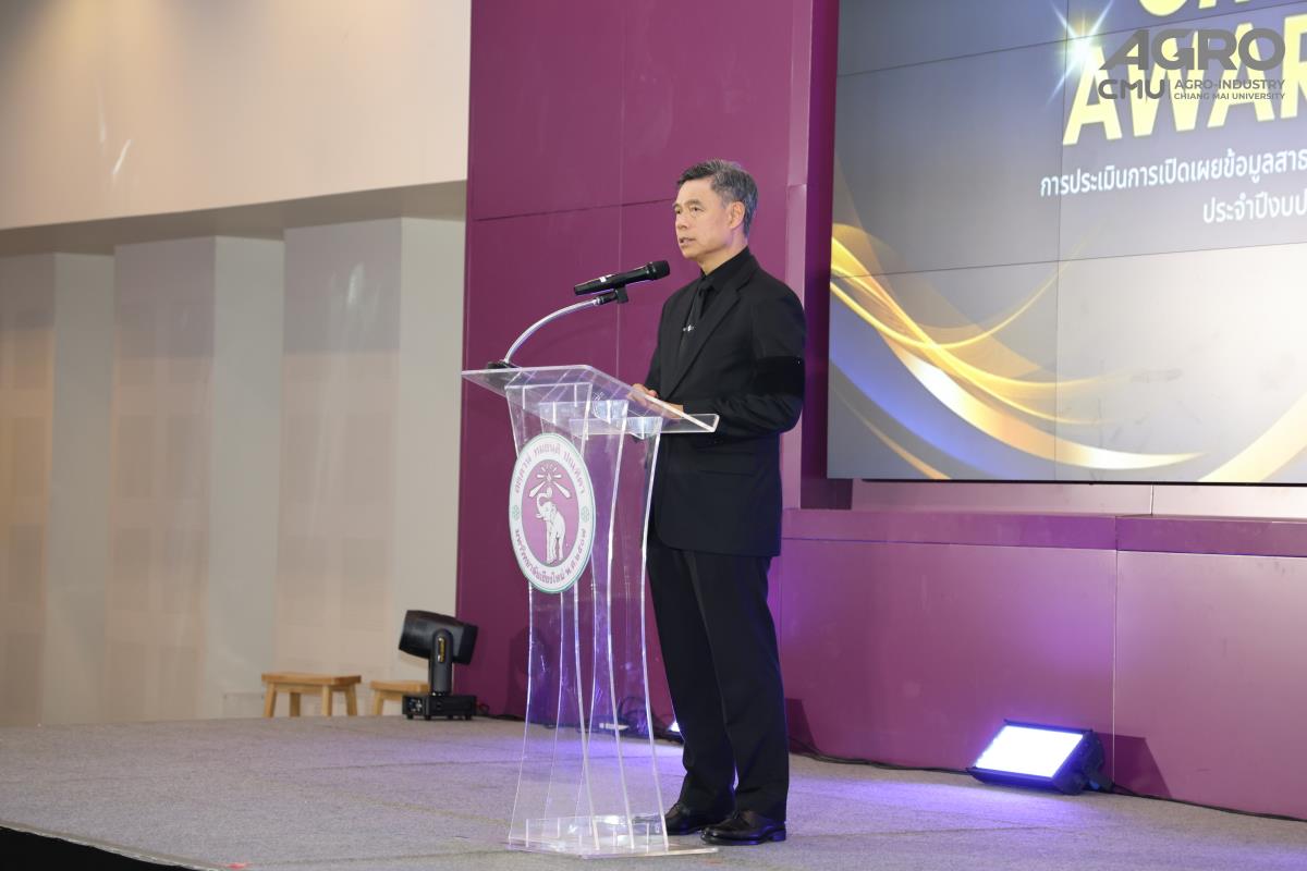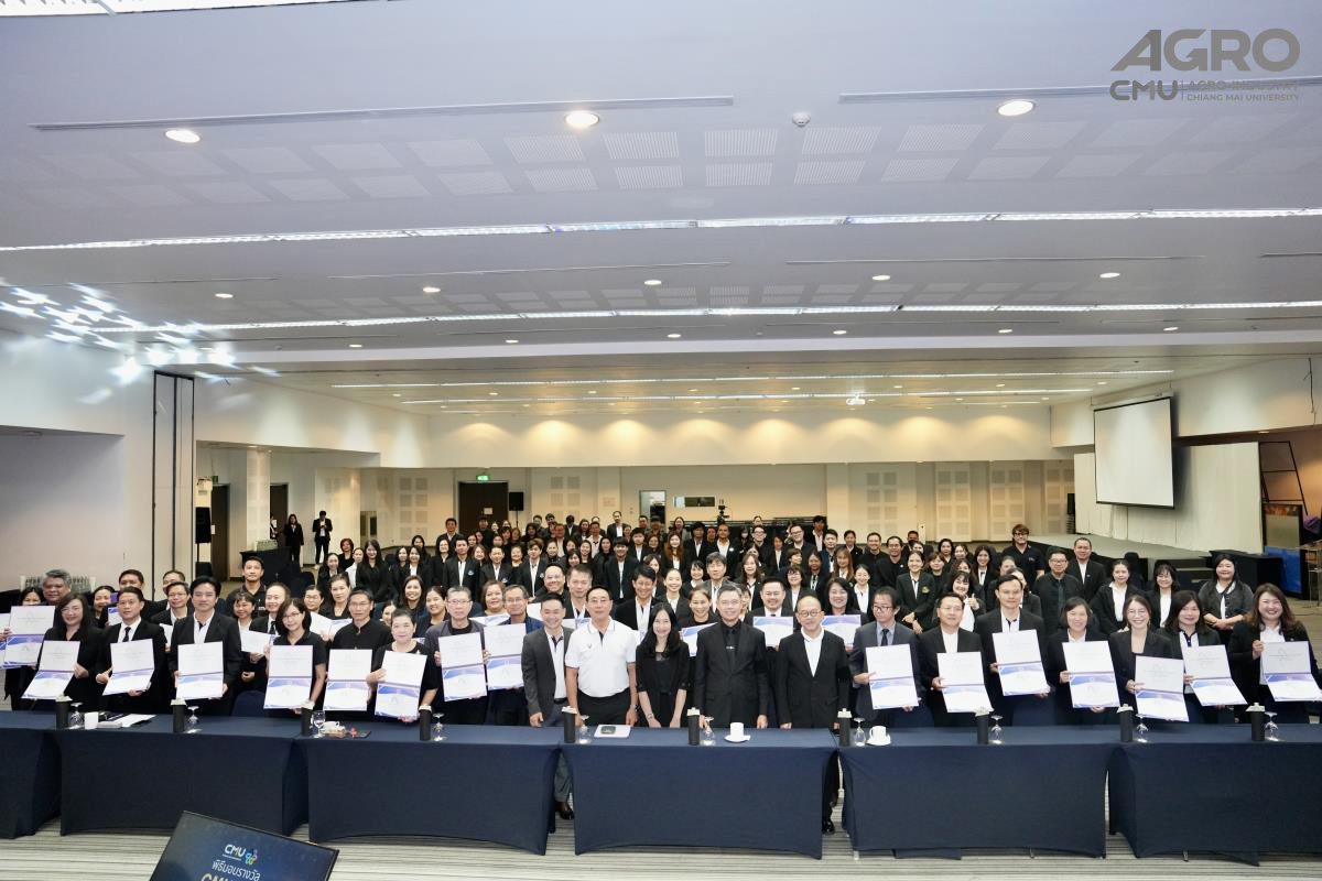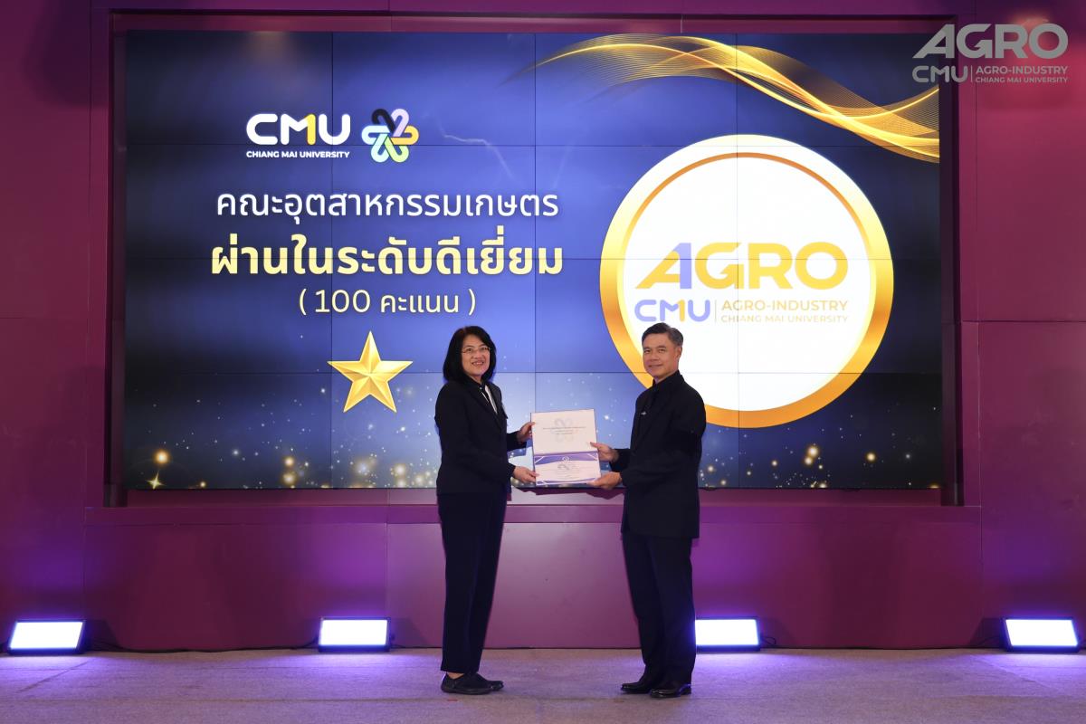 November 5, 2025 – Asst. Prof. Srisuwan Naruenartwongsakul, Ph.D., Associate Dean, representing the Dean of the Faculty of Agro-Industry, received the “CMU-OIT AWARD 2025” for units that achieved an “Excellent Level Pass” in the Chiang Mai University – Open Data Integrity and Transparency Assessment (CMU-OIT) Project for the academic year 2025. The Faculty achieved a perfect score of 100 out of 100 points. Prof. Pongruk Sribanditmongkol, M.D., Ph.D., President of Chiang Mai University, graciously presided over the award ceremony held at the Thong Kwaw Meeting Room, 2nd Floor, Academic Service Center, Chiang Mai University.