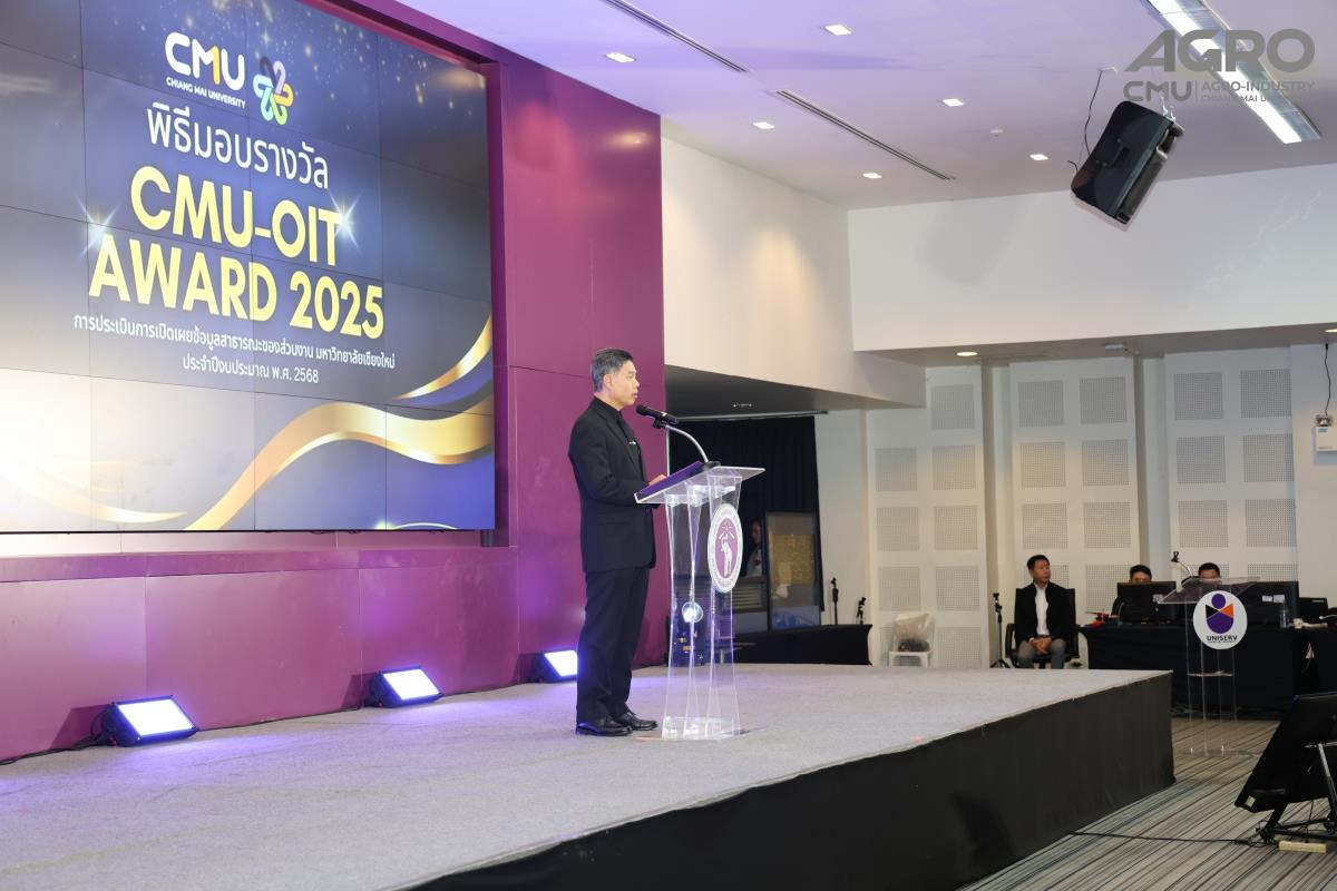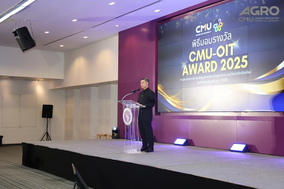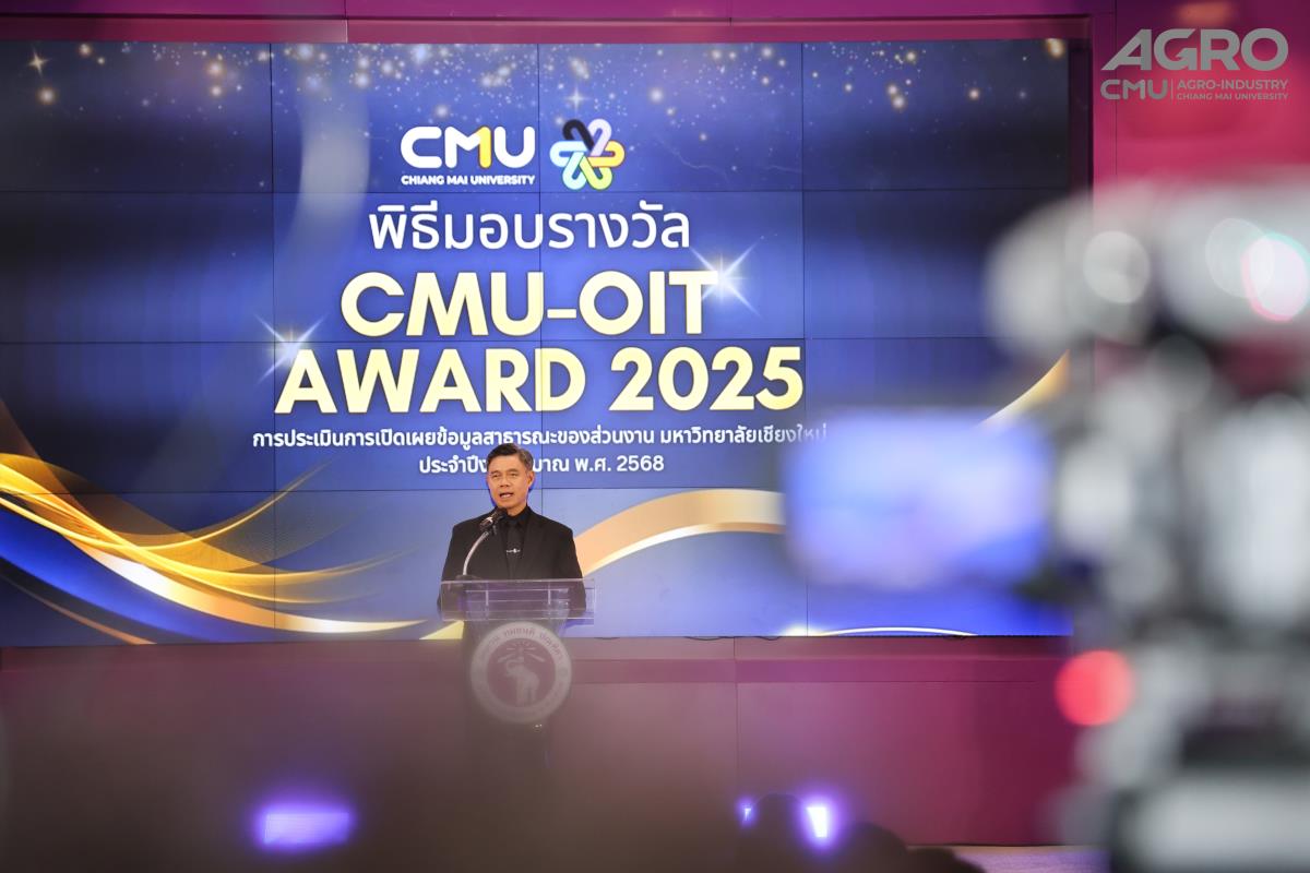วันที่ 5 พฤศจิกายน 2568 ผู้ช่วยศาสตราจารย์ ดร.ศรีสุวรรณ นฤนาทวงศ์สกุล รองคณบดี ในฐานะตัวแทนคณบดีคณะอุตสาหกรรมเกษตร รับรางวัล “CMU-OIT AWARD 2025” ส่วนงานที่มีผลการประเมิน “ผ่านในระดับดีเยี่ยม” จากโครงการประเมินการเปิดเผยข้อมูลสาธารณะของส่วนงาน มหาวิทยาลัยเชียงใหม่ (Chiang Mai University -Open Data Integrity and Transparency Assessment : CMU-OIT) ประจำปี พ.ศ.2568 ได้รับการประเมินที่ 100 คะแนน จากคะแนนเต็ม 100 คะแนน โดยมีศาสตราจารย์ ดร.นายแพทย์พงษ์รักษ์ ศรีบัณฑิตมงคล อธิการบดีมหาวิทยาลัยเชียงใหม่ ให้เกียรติเป็นประธานมอบรางวัล ในพิธีมอบรางวัล CMU-OIT Award 2025 ณ ห้องประชุมทองกวาว ชั้น 2 สำนักบริการวิชาการ มหาวิทยาลัยเชียงใหม่