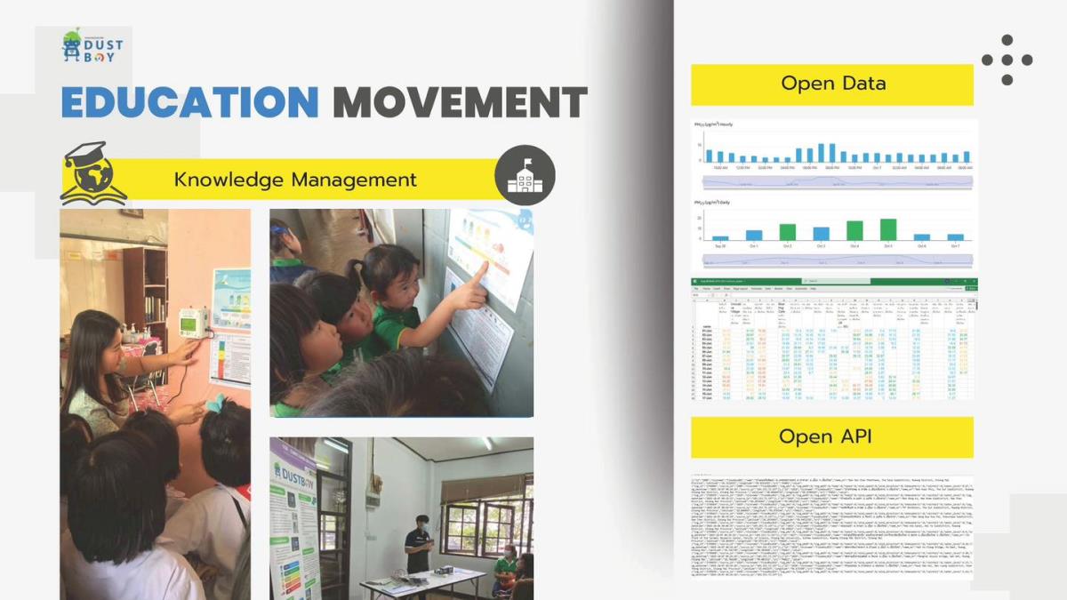 • ข้อมูลจาก DustBoy ที่เผยแพร่สู่สาธารณะช่วยให้โรงเรียน มหาวิทยาลัย หรือกลุ่มเยาวชนเข้าถึง Big Data ได้