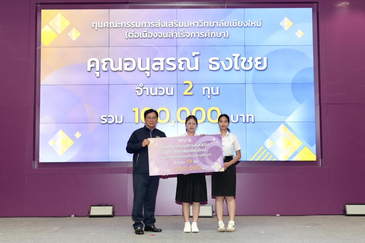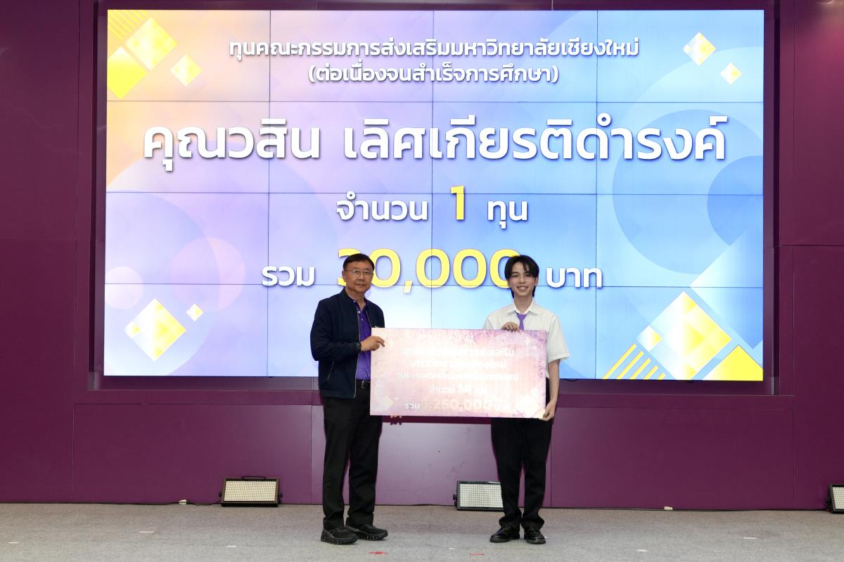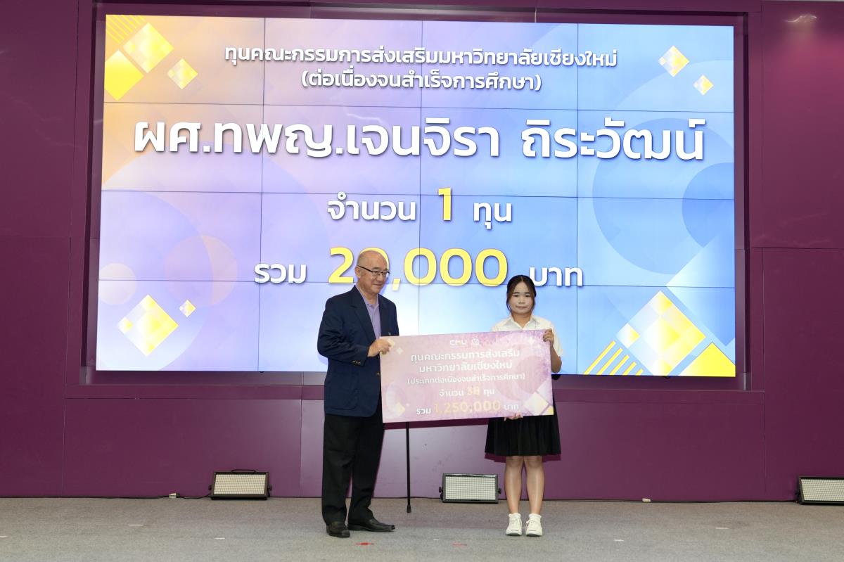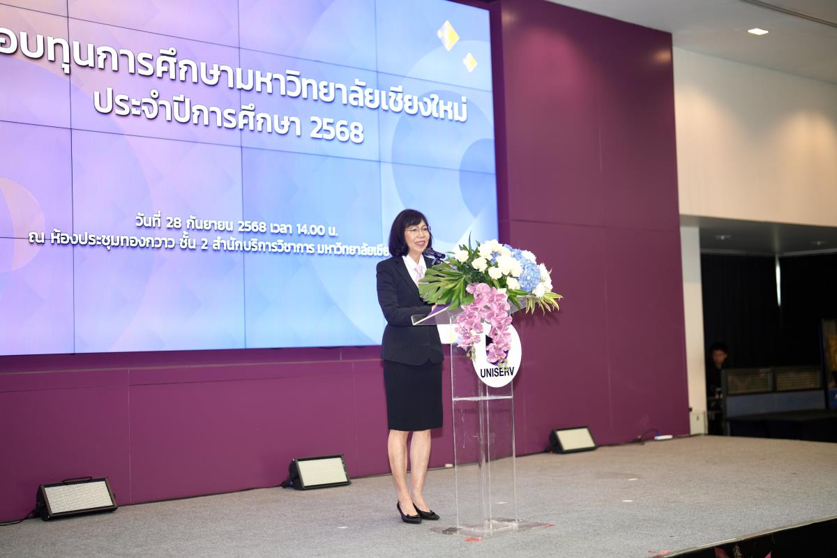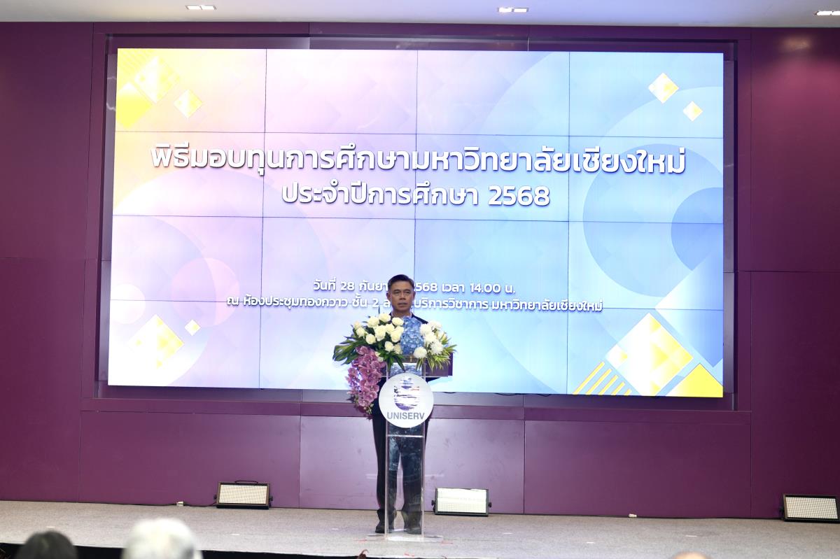 โดยมีศาสตราจารย์ ดร.นพ.พงษ์รักษ์ ศรีบัณฑิตมงคล อธิการบดีมหาวิทยาลัยเชียงใหม่ เป็นผู้แทนในการมอบทุนฯ และกล่าวแสดงความยินดี คุณนารีรัตน์ จันทรมังกร ประธานกรรมการส่งเสริมมหาวิทยาลัยเชียงใหม่ กล่าวให้โอวาท รองศาสตราจารย์ประเสริฐ ฤกษ์เกรียงไกร รองอธิการบดีมหาวิทยาลัยเชียงใหม่ กล่าวรายงาน พร้อมด้วยคณะผู้บริหาร คณะกรรมการส่งเสริมมหาวิทยาลัยเชียงใหม่ ผู้แทนจากหน่วยงาน องค์กรต่างๆ คณาจารย์ เจ้าหน้าที่ ร่วมมอบทุนการศึกษา ณ ห้องทองกวาว สำนักบริการวิชาการ มหาวิทยาลัยเชียงใหม่ เมื่อวันอาทิตย์ที่ 28 กันยายน พ.ศ.2568