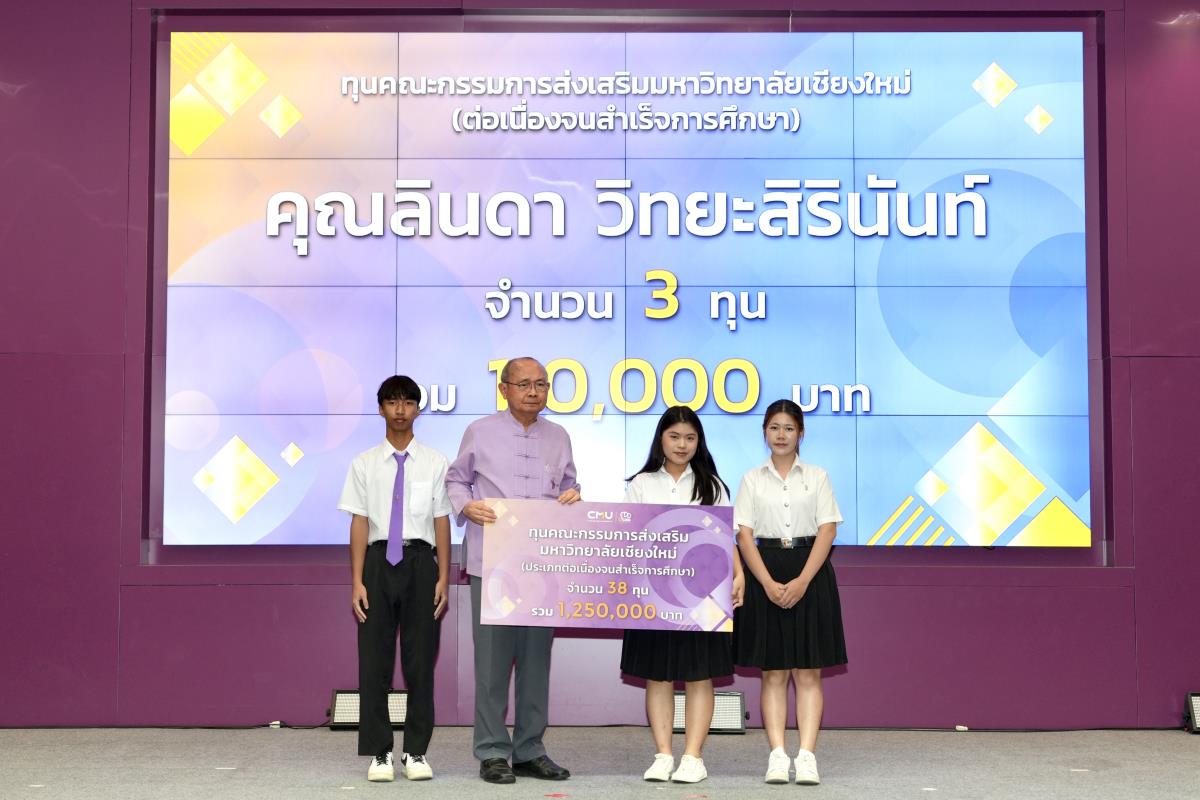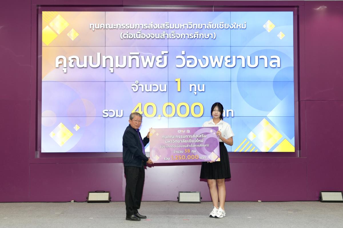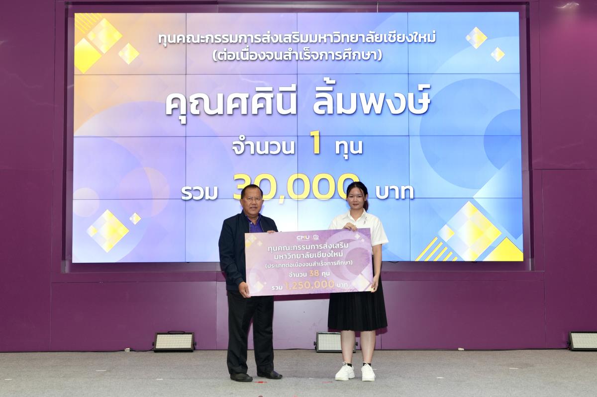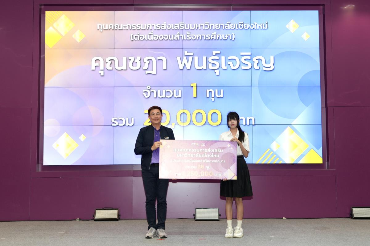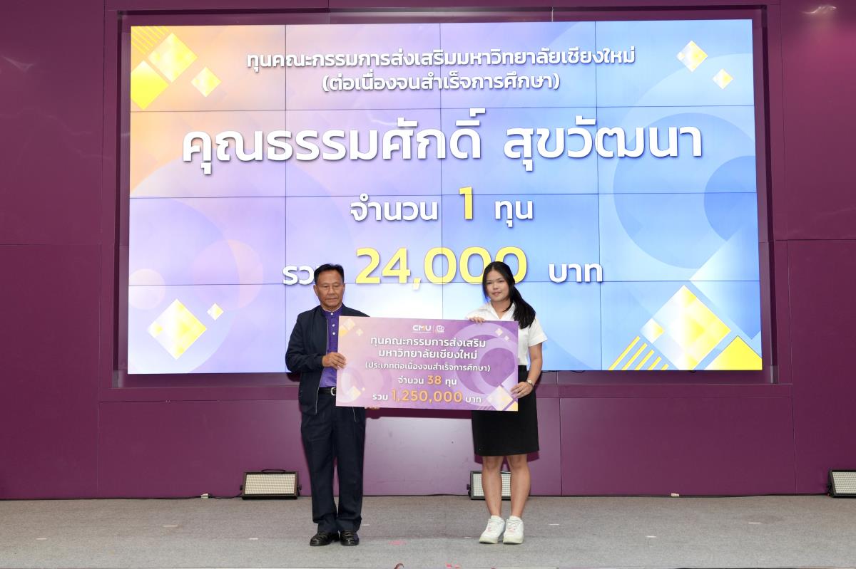 โดยมีศาสตราจารย์ ดร.นพ.พงษ์รักษ์ ศรีบัณฑิตมงคล อธิการบดีมหาวิทยาลัยเชียงใหม่ เป็นผู้แทนในการมอบทุนฯ และกล่าวแสดงความยินดี คุณนารีรัตน์ จันทรมังกร ประธานกรรมการส่งเสริมมหาวิทยาลัยเชียงใหม่ กล่าวให้โอวาท รองศาสตราจารย์ประเสริฐ ฤกษ์เกรียงไกร รองอธิการบดีมหาวิทยาลัยเชียงใหม่ กล่าวรายงาน พร้อมด้วยคณะผู้บริหาร คณะกรรมการส่งเสริมมหาวิทยาลัยเชียงใหม่ ผู้แทนจากหน่วยงาน องค์กรต่างๆ คณาจารย์ เจ้าหน้าที่ ร่วมมอบทุนการศึกษา ณ ห้องทองกวาว สำนักบริการวิชาการ มหาวิทยาลัยเชียงใหม่ เมื่อวันอาทิตย์ที่ 28 กันยายน พ.ศ.2568