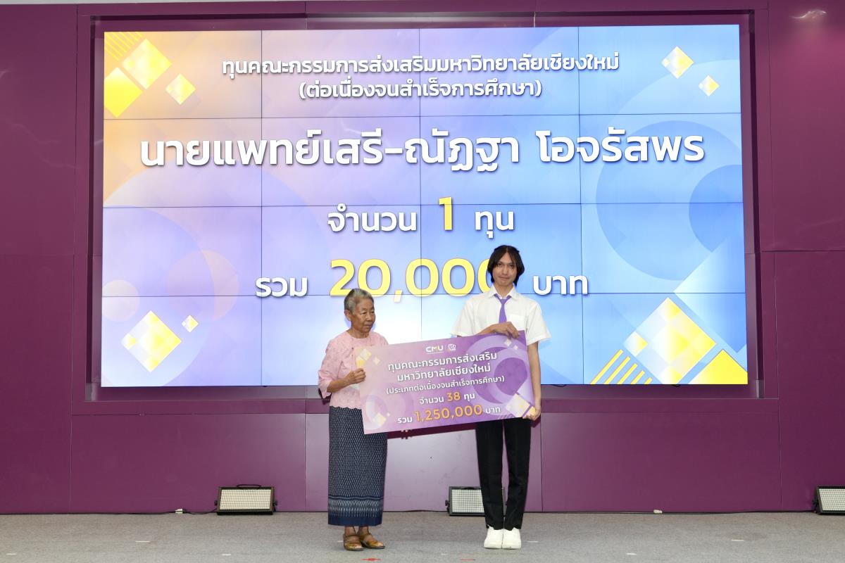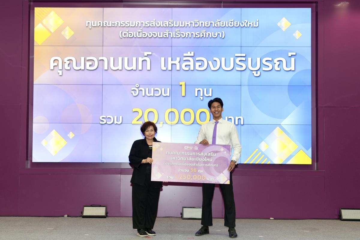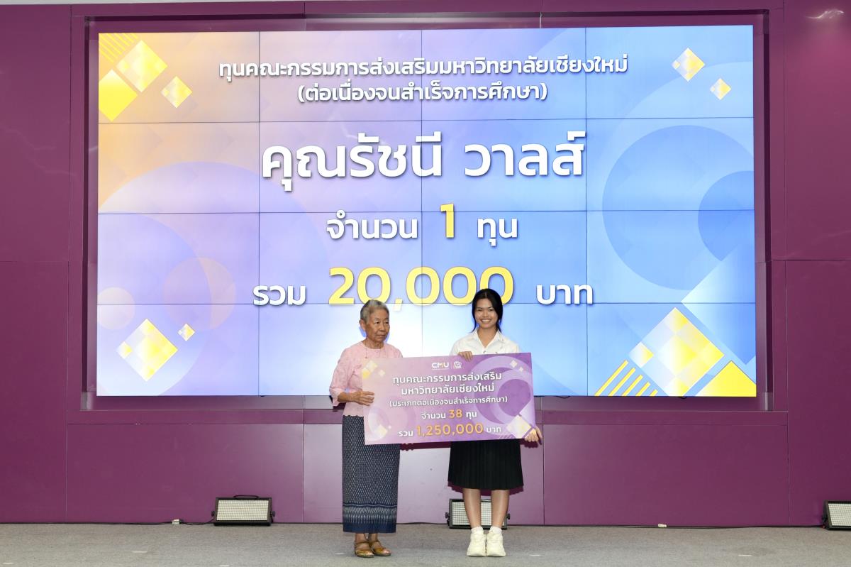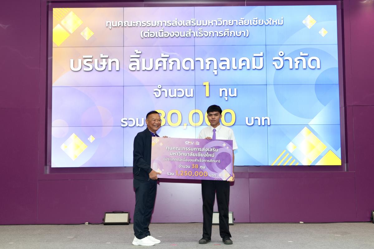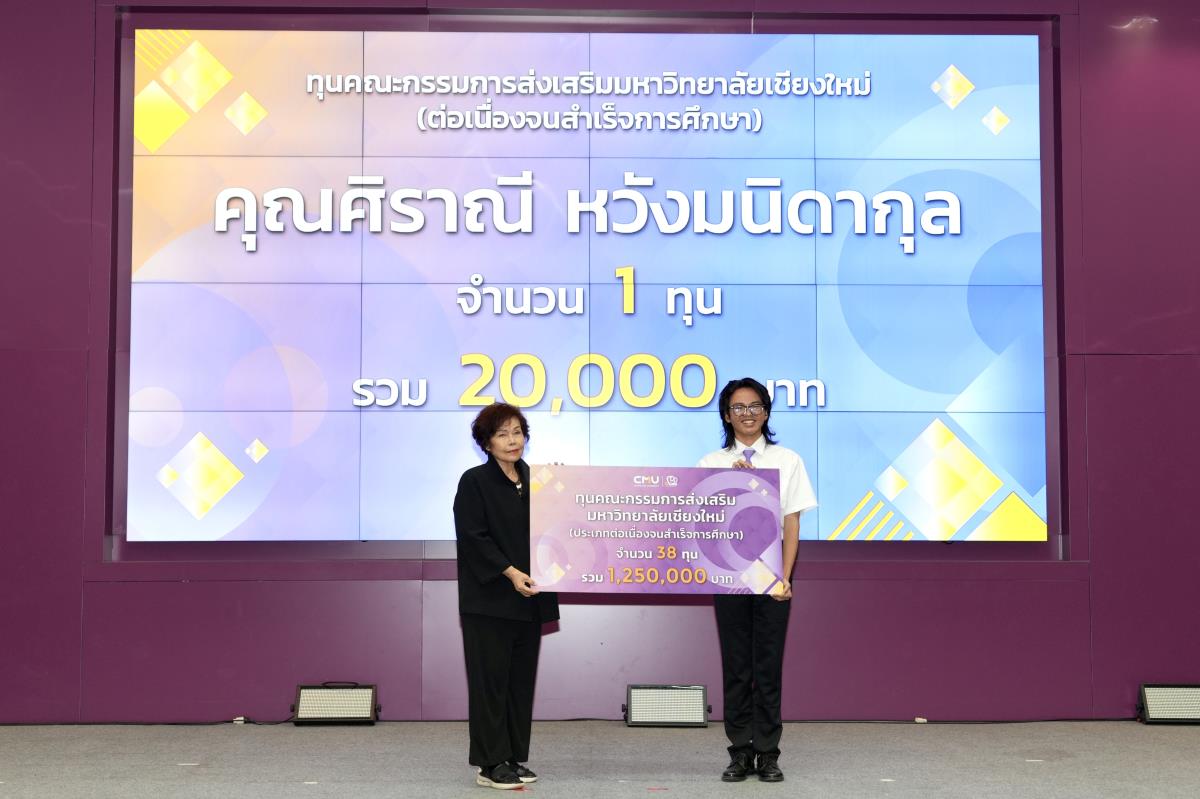 โดยมีศาสตราจารย์ ดร.นพ.พงษ์รักษ์ ศรีบัณฑิตมงคล อธิการบดีมหาวิทยาลัยเชียงใหม่ เป็นผู้แทนในการมอบทุนฯ และกล่าวแสดงความยินดี คุณนารีรัตน์ จันทรมังกร ประธานกรรมการส่งเสริมมหาวิทยาลัยเชียงใหม่ กล่าวให้โอวาท รองศาสตราจารย์ประเสริฐ ฤกษ์เกรียงไกร รองอธิการบดีมหาวิทยาลัยเชียงใหม่ กล่าวรายงาน พร้อมด้วยคณะผู้บริหาร คณะกรรมการส่งเสริมมหาวิทยาลัยเชียงใหม่ ผู้แทนจากหน่วยงาน องค์กรต่างๆ คณาจารย์ เจ้าหน้าที่ ร่วมมอบทุนการศึกษา ณ ห้องทองกวาว สำนักบริการวิชาการ มหาวิทยาลัยเชียงใหม่ เมื่อวันอาทิตย์ที่ 28 กันยายน พ.ศ.2568
