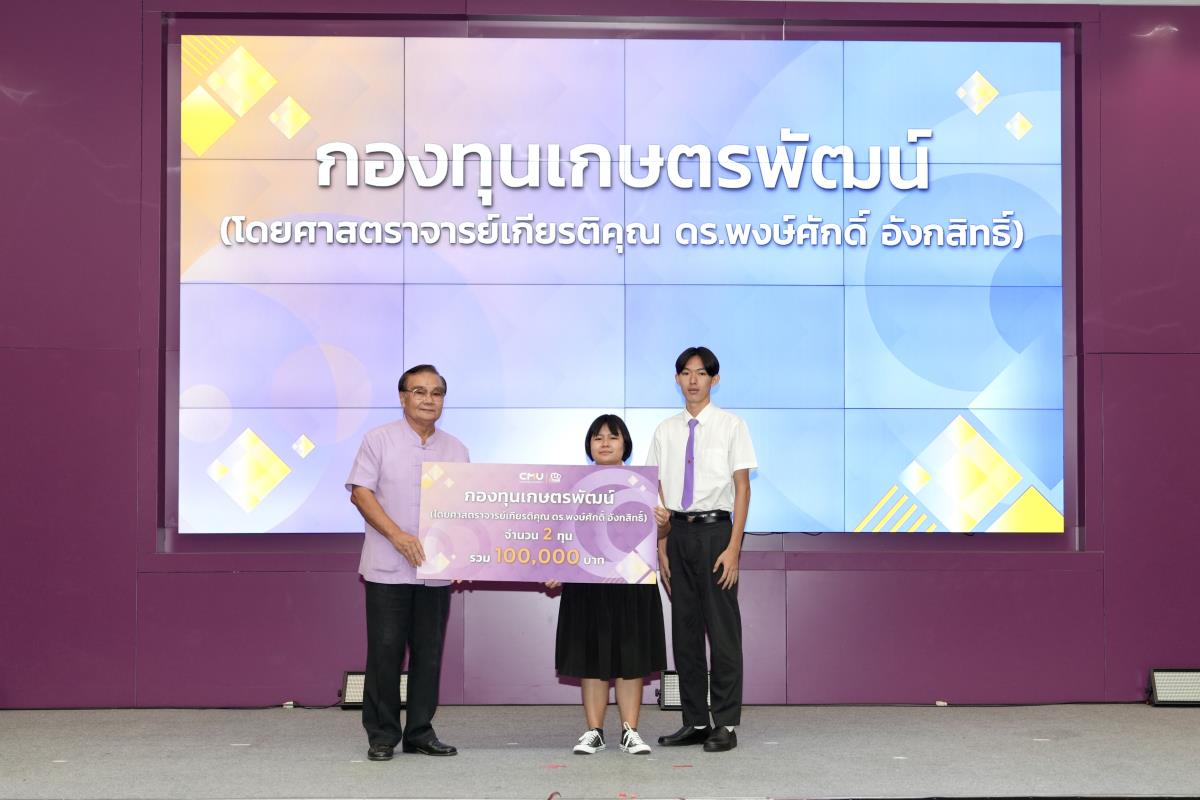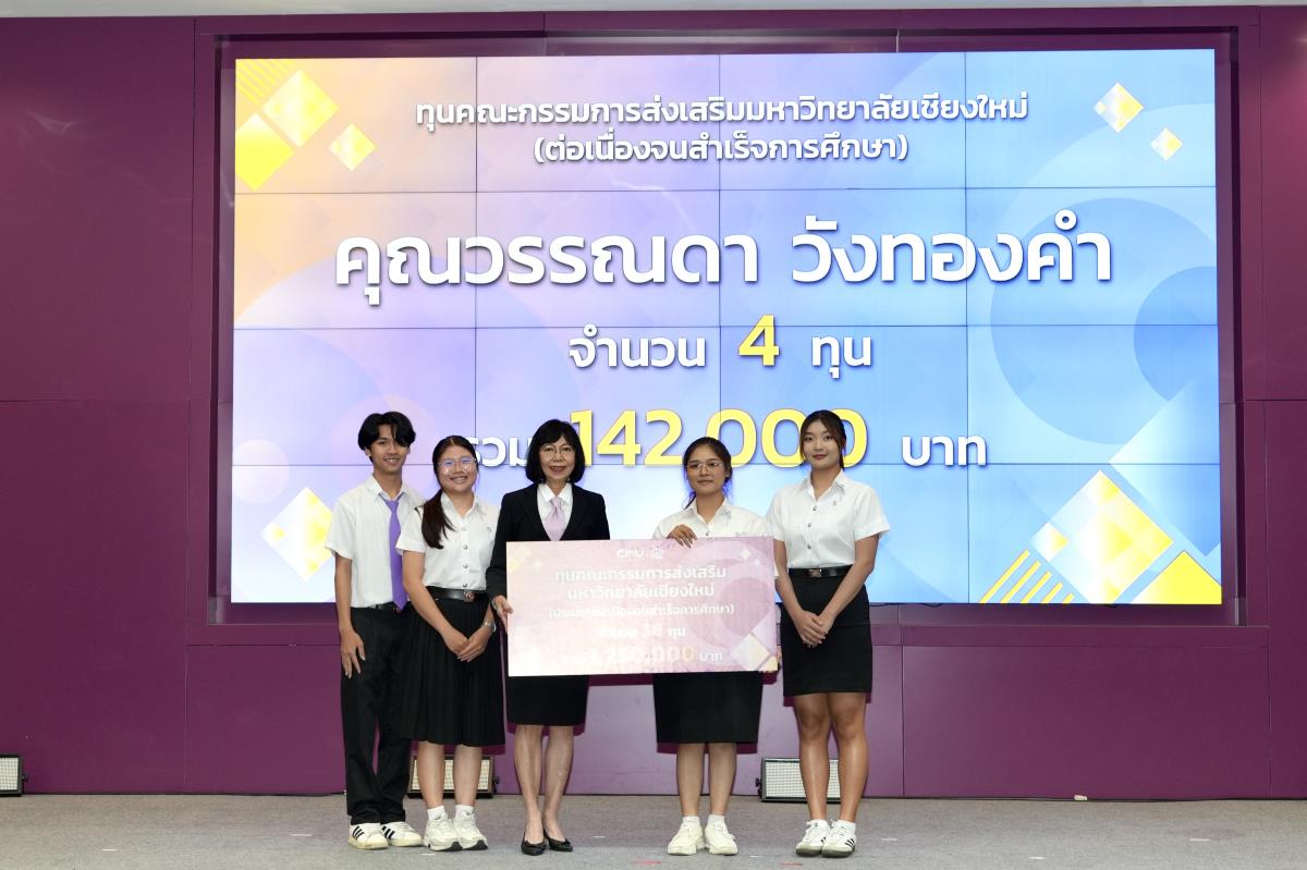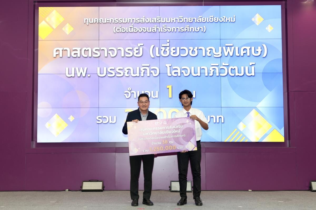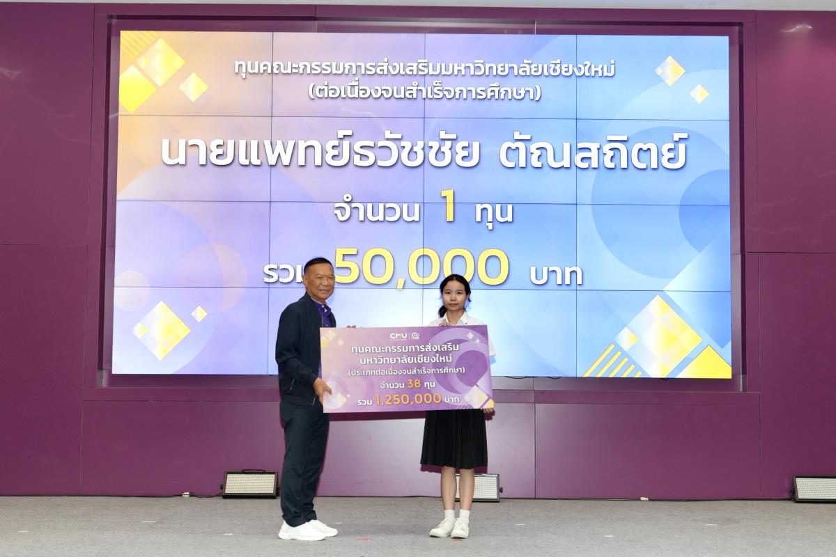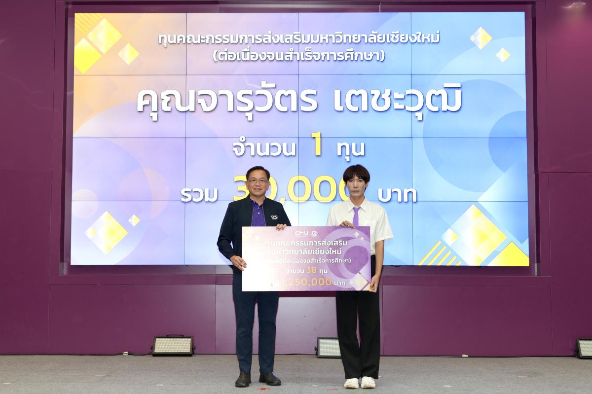 โดยมีศาสตราจารย์ ดร.นพ.พงษ์รักษ์ ศรีบัณฑิตมงคล อธิการบดีมหาวิทยาลัยเชียงใหม่ เป็นผู้แทนในการมอบทุนฯ และกล่าวแสดงความยินดี คุณนารีรัตน์ จันทรมังกร ประธานกรรมการส่งเสริมมหาวิทยาลัยเชียงใหม่ กล่าวให้โอวาท รองศาสตราจารย์ประเสริฐ ฤกษ์เกรียงไกร รองอธิการบดีมหาวิทยาลัยเชียงใหม่ กล่าวรายงาน พร้อมด้วยคณะผู้บริหาร คณะกรรมการส่งเสริมมหาวิทยาลัยเชียงใหม่ ผู้แทนจากหน่วยงาน องค์กรต่างๆ คณาจารย์ เจ้าหน้าที่ ร่วมมอบทุนการศึกษา ณ ห้องทองกวาว สำนักบริการวิชาการ มหาวิทยาลัยเชียงใหม่ เมื่อวันอาทิตย์ที่ 28 กันยายน พ.ศ.2568