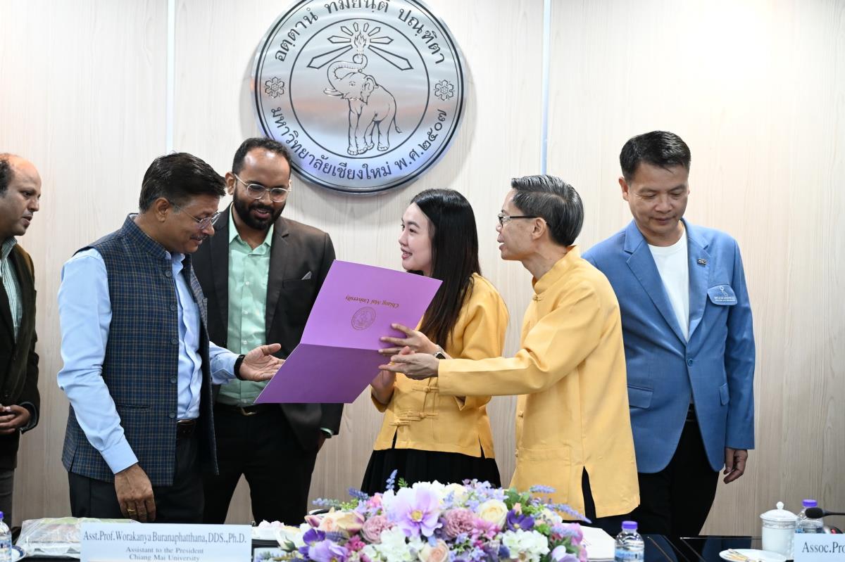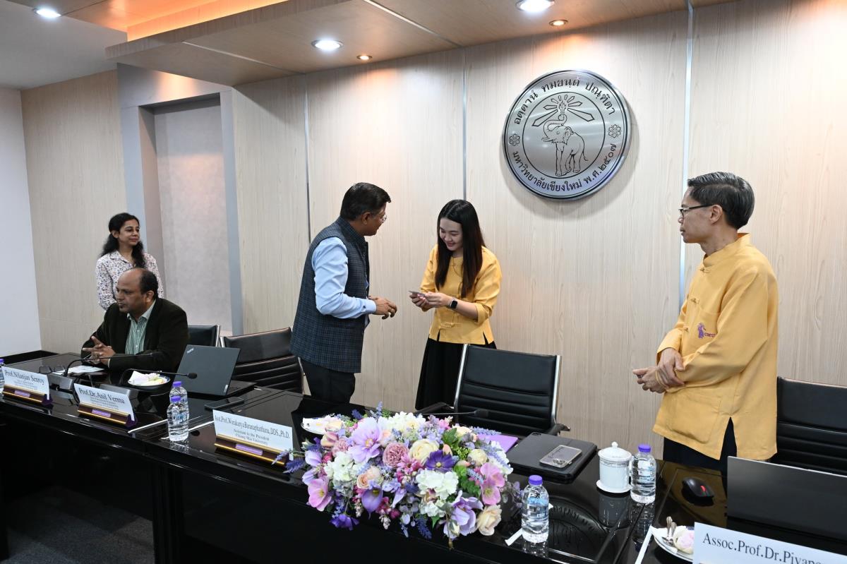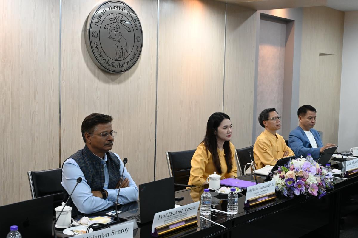 ผู้ช่วยศาสตราจารย์ ดร.ทพญ.วรกัญญา บูรณพัฒนา ผู้ช่วยอธิการบดี พร้อมด้วยคณะผู้บริหาร เจ้าหน้าที่และนักศึกษามหาวิทยาลัยเชียงใหม่ ให้การต้อนรับ Dr. Anil Verma คณบดีฝ่ายโครงการนานาชาติ สถาบันเทคโนโลยีแห่งอินเดียเดลี ประเทศอินเดีย พร้อมด้วยคณะ ในโอกาสที่มาเยี่ยมเยือนมหาวิทยาลัยเชียงใหม่ เพื่อปรึกษาหารือและแลกเปลี่ยนข้อคิดเห็น เกี่ยวกับความร่วมมือทางวิชาการในอนาคต และบรรยายในหัวข้อ “ปัญญาประดิษฐ์กับการศึกษา” ณ ห้องประชุมพระยาศรีวิสารวาจา อาคารสำนักงานมหาวิทยาลัย 1 มหาวิทยาลัยเชียงใหม่ วันจันทร์ที่ 29 กันยายน พ.ศ. 2568