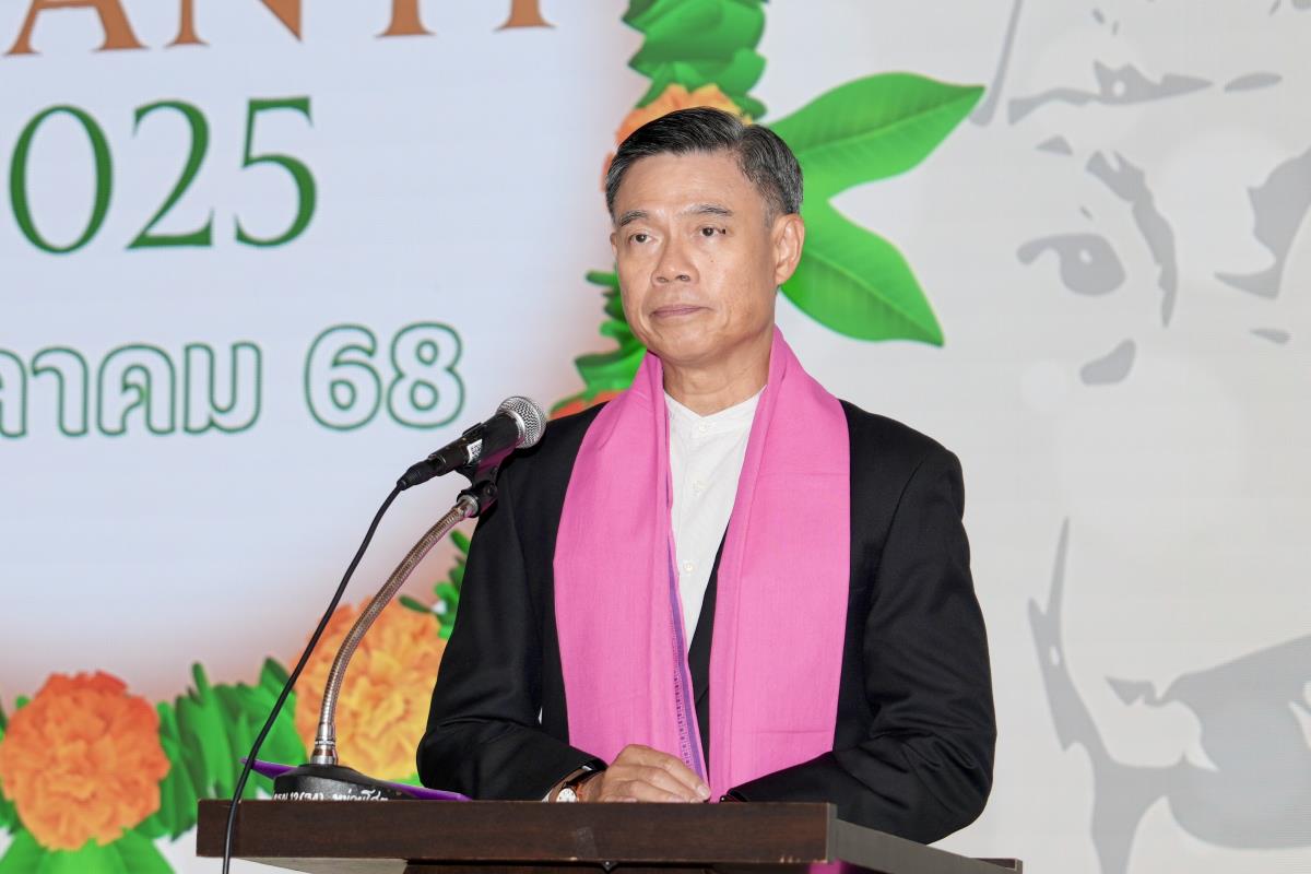 ศาสตราจารย์ นายแพทย์พงษ์รักษ์ ศรีบัณฑิตมงคล อธิการบดีมหาวิทยาลัยเชียงใหม่ กล่าวรำลึกถึงมหาตมะ คานธี โดยเน้นว่า หลักการแห่งสัจจะ อหิงสา และความพอเพียงเป็นมรดกทางจิตวิญญาณที่ยังคงคุณค่าเหนือกาลเวลา การประดิษฐานรูปปั้นคานธีในมหาวิทยาลัยถือเป็นเกียรติและเป็นเครื่องเตือนใจถึงแก่นแท้ของการศึกษา คือการบ่มเพาะทั้งความรู้และคุณธรรม อธิการบดียังได้กล่าวถึงวิถีมังสวิรัติของคานธีว่าเป็นหนทางแห่งความเมตตาและการอยู่ร่วมกับธรรมชาติอย่างสมดุล สอดคล้องกับแนวทางการพัฒนาที่ยั่งยืน พร้อมชื่นชมสมาคมมังสวิรัติไทย–นานาชาติที่จัดทำหนังสือเผยแพร่ความรู้ด้านโภชนาการและการกินมังสวิรัติ ซึ่งไม่เพียงเป็นประโยชน์ต่อสุขภาพ หากยังสืบสานเจตนารมณ์ของคานธี และสะท้อนว่า “การเลือกอาหาร คือการเลือกอนาคตของโลก”