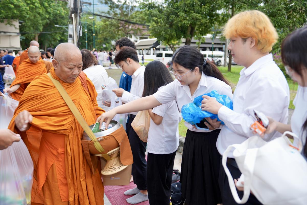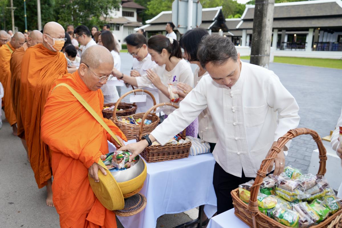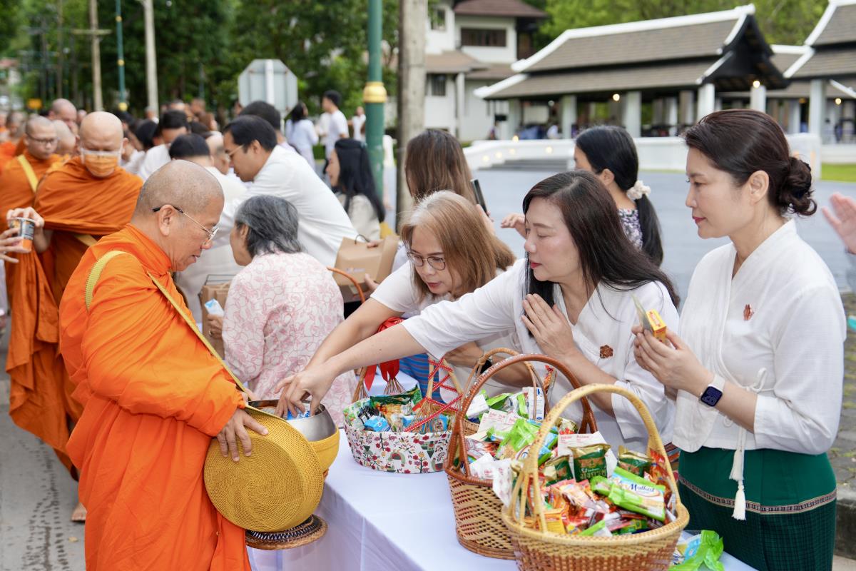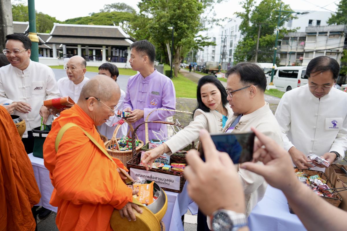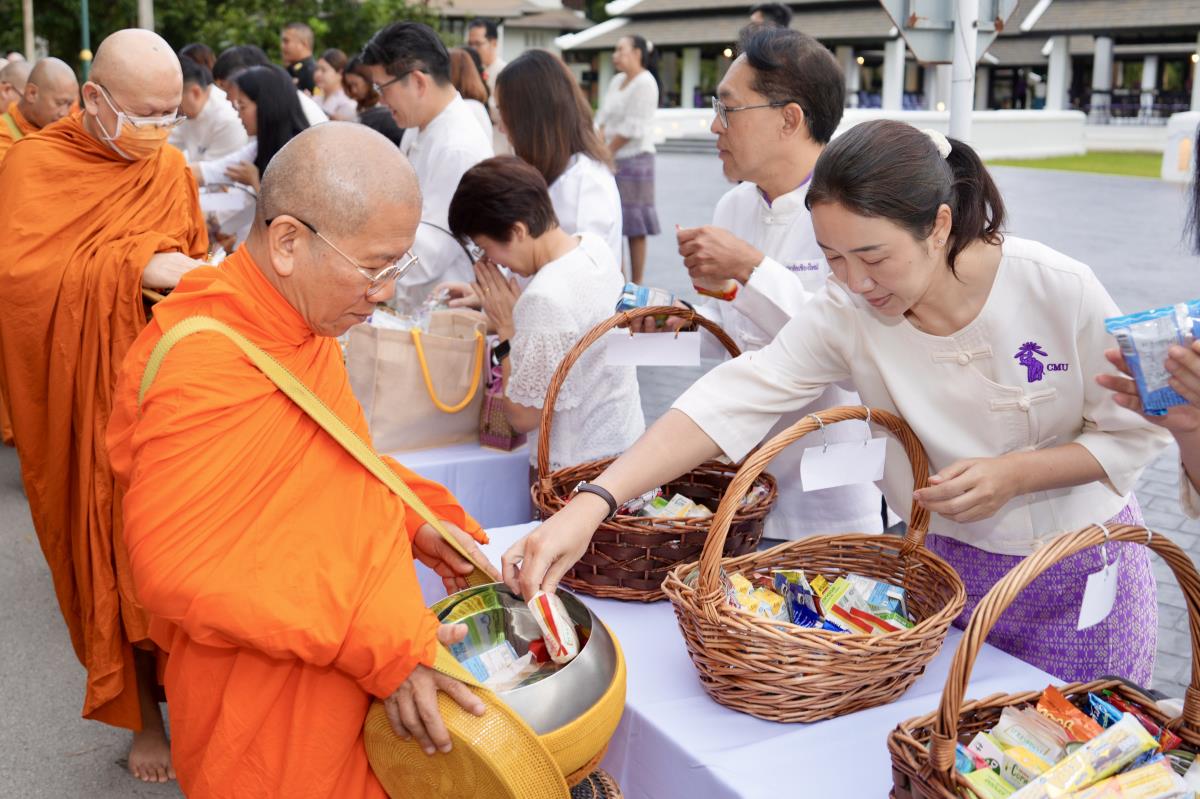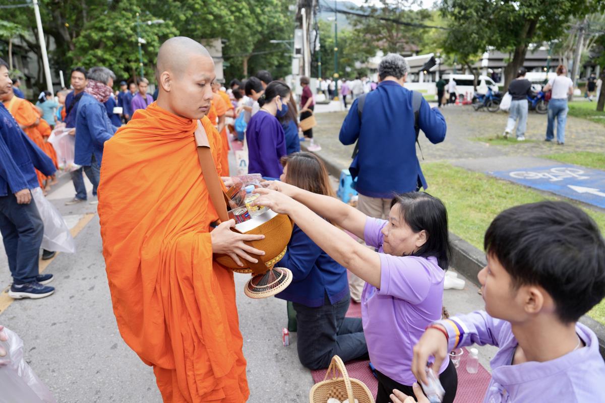 คณะกรรมการดำเนินงานด้านส่งเสริมศาสนา มหาวิทยาลัยเชียงใหม่ จัดพิธีทำบุญตักบาตรเนื่องในวันเทโวโรหณะ ประจำปี 2568 โดยมี นายวีรพงศ์ ฤทธิ์รอด รองผู้ว่าราชการจังหวัดเชียงใหม่ เป็นประธานในพิธี พร้อมด้วย ศาสตราจารย์คลินิก นพ.นิเวศน์ นันทจิต อดีตอธิการบดีมหาวิทยาลัยเชียงใหม่ เลขานุการมูลนิธิขาเทียมในสมเด็จพระศรีนครินทราบรมราชชนนี รองศาสตราจารย์ประเสริฐ ฤกษ์เกรียงไกร รองอธิการบดี หัวหน้าส่วนราชการ คณะผู้บริหาร จากหน่วยงานองค์กรต่างๆ คณาจารย์ เจ้าหน้าที่ นักศึกษามหาวิทยาลัยเชียงใหม่ และพุทธศาสนิกชน ร่วมพิธีฯ ณ ข่วงวัฒนธรรม ถนนสายวัฒนธรรม มหาวิทยาลัยเชียงใหม่ เมื่อวันพุธที่ 8 ตุลาคม 2568