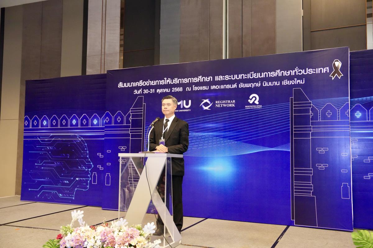 ทะเบียนการศึกษา อีกทั้งเป็นเวทีแลกเปลี่ยนประสบการณ์ แนวทางปฏิบัติที่ดี (Best Practices) จาการนำ AI ประยุกต์ใช้ในมหาวิทยาลัยต่าง ๆ โดยมี ศาสตราจารย์ ดร.นายแพทย์พงษ์รักษ์ ศรีบัณฑิตมงคล อธิการบดีมหาวิทยาลัยเชียงใหม่ ประธานเปิดการสัมมนาฯ รองศาสตราจารย์ ดร.พฤทธ์ สกุลช่างสัจจะทัย ผู้อำนวยการสำนักทะเบียนและประมวลผลมหาวิทยาลัยเชียงใหม่ กล่าวรายงาน พร้อมด้วยผู้เข้าร่วมสัมมนาจาก 43 สถาบันทั่วประเทศ ร่วมการสัมมนา ณ ห้องประชุม ชั้น 2 โรงแรมแกรนด์ ราชพฤกษ์ (กองบิน 41) เมื่อวันพฤหัสบดีที่ 30 ตุลาคม 2568
