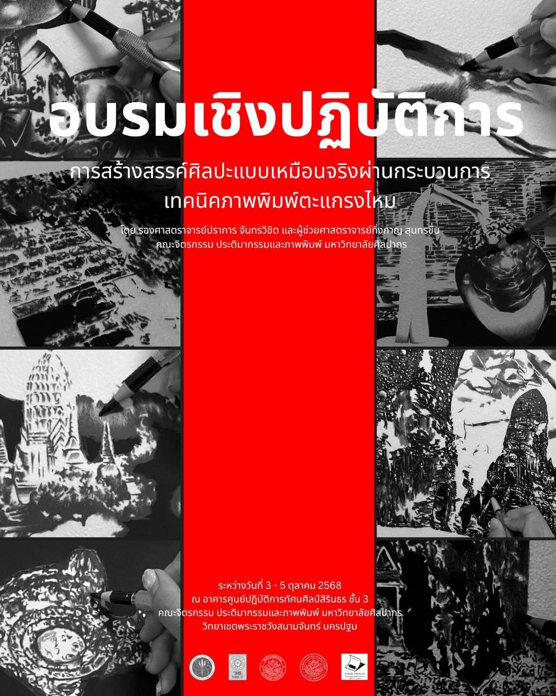 สาขาวิชาศิลปะภาพพิมพ์ คณะวิจิตรศิลป์ มช. ร่วมเรียนรู้เทคนิคภาพพิมพ์ตะแกรงไหมแบบเหมือนจริง ณ ม.ศิลปากร คณะวิจิตรศิลป์ 6 ตุลาคม 2568 SDGs 4 11 17
