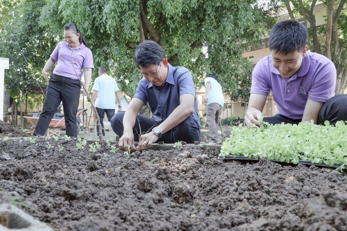 คณะสัตวแพทยศาสตร์ มหาวิทยาลัยเชียงใหม่ ร่วมแรงร่วมใจปลูกพืชผักสวนครัวบนแปลงเกษตรที่จัดทำขึ้นจากขยะชีวมวลและปุ๋ยชีวภาพ ซึ่งเป็นผลผลิตจากการนำขยะอินทรีย์ที่เหลือจากการฝังกลบกลับมาใช้ประโยชน์ใหม่ ตามเป้าหมายของการพัฒนาไปสู่สำนักงานสีเขียวอย่างยั่งยืน วันที่ 22 ตุลาคม 2568