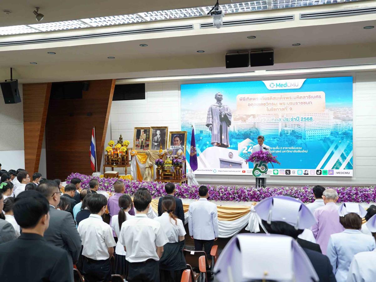 คณะเทคนิคการแพทย์ มหาวิทยาลัยเชียงใหม่ ร่วมแสดงความยินดีกับ ดร.กภ.วิโรจน์ ทิพย์วิบูลย์ชัย ศิษย์เก่าสาขากายภาพบำบัด คณะเทคนิคการแพทย์ รหัสประจำตัวนักศึกษา 3211153 ในโอกาสได้รับการคัดเลือกเป็นศิษย์เก่าดีเด่น สาขาวิทยาศาสตร์สุขภาพ เนื่องในวันมหิดล ประจำปี 2568 ในพิธีเทิดพระเกียรติ สมเด็จพระมหิตลาธิเบศร อดุลยเดชวิกรม พระบรมราชชนก ในรัชกาลที่ 9 ประจำปี 2568 โดยมี ผู้ช่วยศาสตราจารย์ ดร.เพ็ญนภา คลังสินศิริกุล รองคณบดี พร้อมด้วยคณาจารย์ บุคลากร คณะเทคนิคการแพทย์ ร่วมแสดงความยินดี ณ ห้องประชุม ชั้น 2 อาคารเรียนรวม คณะแพทยศาสตร์ มหาวิทยาลัยเชียงใหม่ และห้องบรรยายศิษย์เก่าสัมพันธ์ ชั้น 1 อาคาร 2 คณะเทคนิคการแพทย์ มหาวิทยาลัยเชียงใหม่ เมื่อวันพุธที่ 24 กันยายน 2568