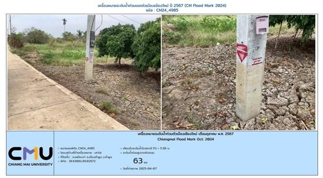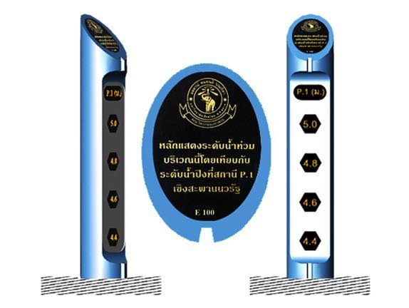นอกจากนี้ ยังมีการติดตั้งเครื่องมือเชิงกายภาพและสัญลักษณ์เตือนเพื่อให้ประชาชนเห็นระดับความเสี่ยงได้ทันที ได้แก่ หลักเตือนระดับน้ำท่วมเขตเมือง (CM Flood Poles) และ เครื่องหมายระดับน้ำท่วม (Flood Mark) ซึ่งทำงานควบคู่กับข้อมูลเชิงพื้นที่ เพื่อช่วยให้การแจ้งเตือนเป็นรูปธรรม เข้าใจง่าย และสามารถนำไปสู่การตัดสินใจของชุมชนและหน่วยงานได้รวดเร็วขึ้น