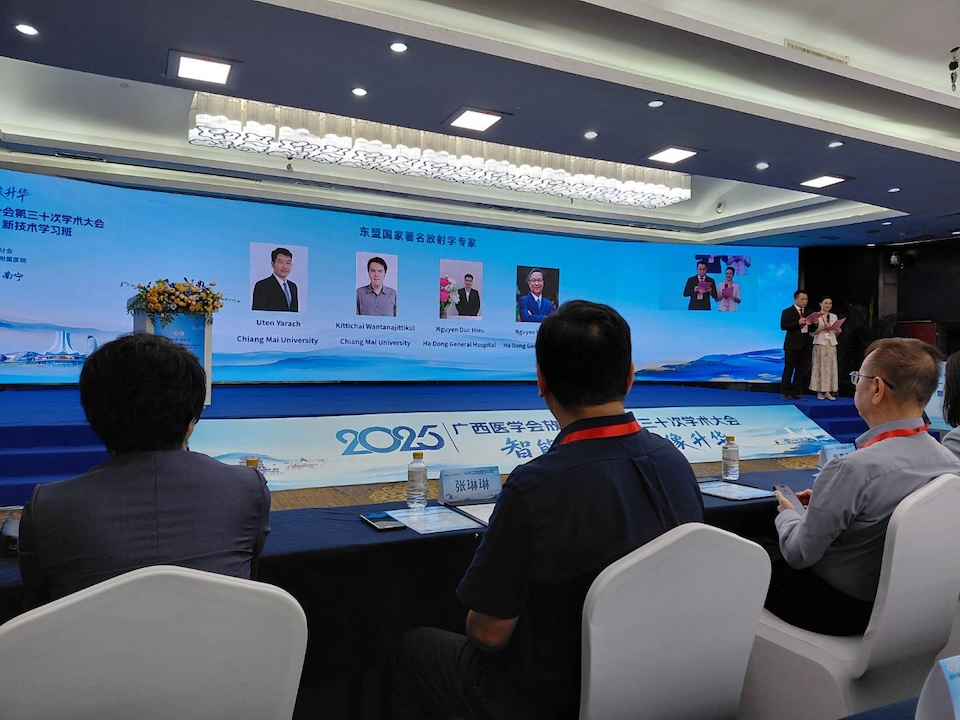 ผู้ช่วยศาสตราจารย์ ดร.กิตติชัย วรรธนะจิตติกุล พร้อมด้วย ผู้ช่วยศาสตราจารย์ ดร.อุเทน ยะราช อาจารย์ประจำภาควิชารังสีเทคนิค คณะเทคนิคการแพทย์ มหาวิทยาลัยเชียงใหม่ ได้รับเชิญเป็นวิทยากร ในการประชุมวิชาการประจำปี The 30th Annual Academic Meeting of the Radiology Branch พร้อมทั้งได้เข้าเยี่ยมชมและหารือแนวทางความร่วมมือทางวิชาการกับคณาจารย์ภาควิชารังสีวิทยา มหาวิทยาลัยการแพทย์กว่างซี (Guangxi Medical University) ณ เมืองหนานหนิง มณฑลกว่างซี สาธารณรัฐประชาชนจีน ระหว่างวันที่ 25-27 กันยายน 2568