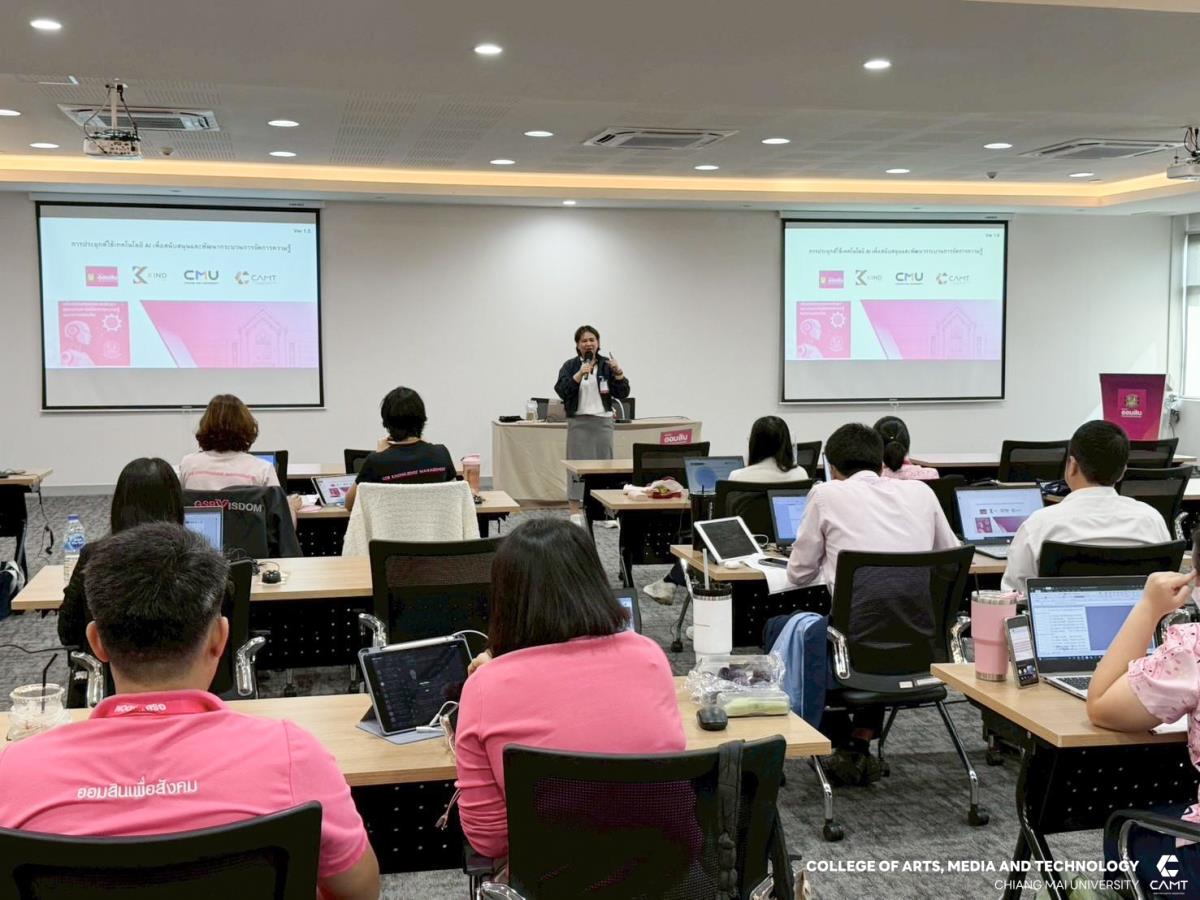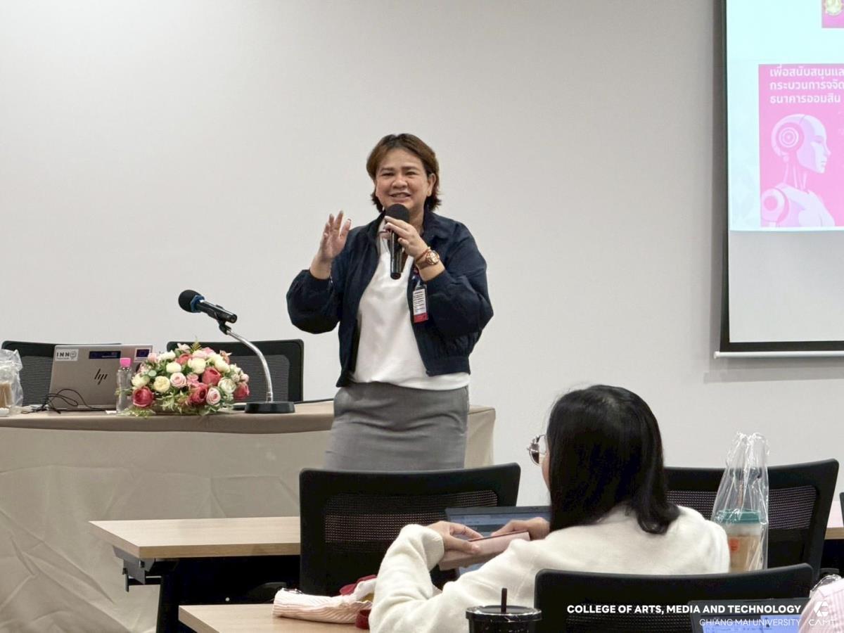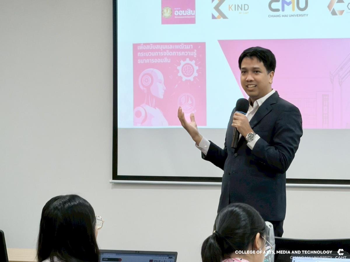 ผู้ช่วยศาสตราจารย์ ดร.อัจฉรา คำอักษร ผู้ปฏิบัติหน้าที่ช่วยคณบดี ด้านการพัฒนาองค์ความรู้และการจัดการนวัตกรรม/ หัวหน้าศูนย์การพัฒนาองค์ความรู้และนวัตกรรม (Knowledge and Innovation Development: KIND) พร้อมด้วยผู้ช่วยศาสตราจารย์ ดร.อรวิชย์ ถิ่นนุกูล และผู้ช่วยศาสตราจารย์ ดร.มณิษวาส จินตพิทักษ์ อาจารย์ประจำวิทยาลัยศิลปะ สื่อ และเทคโนโลยี มหาวิทยาลัยเชียงใหม่ ดำเนินจัดอบรมเชิงปฏิบัติการ ภายใต้โครงการ "หลักสูตรการพัฒนาและเสริมสร้างขีดความสามารถด้านการจัดการความรู้ " ให้แก่ ทีมงานด้านการจัดการความรู้ ธนาคารออมสิน สำนักงานใหญ่ ระหว่างวันที่ 2-3 ตุลาคม 2568 โดยการจัดกิจกรรมในวันที่ 2 ตุลาคม 2568 เป็นการฝึกอบรมเชิงปฏิบัติการในหัวข้อเรื่อง “การประยุกต์ใช้เทคโนโลยี AI เพื่อสนับสนุนและพัฒนากระบวนการจัดการความรู้” และในวันที่ 3 ตุลาคม 2568 เป็นการฝึกอบรมเชิงปฏิบัติการในหัวข้อเรื่อง “การเชื่อมโยง KM กับกระบวนการปฏิบัติงาน (KM & Operational Process Integration) การใช้ข้อมูลและความรู้เพื่อปรับปรุงกระบวนการทำงานอย่างเป็นระบบ (Knowledge-Driven Process Improvement)" ณ ห้องประชุมลี ธนาคารออมสิน สำนักงานใหญ่ ซึ่งการอบรมในครั้งนี้มีผู้สนใจเข้าร่วมกิจกรรมจำนวนกว่า 30 ท่าน
