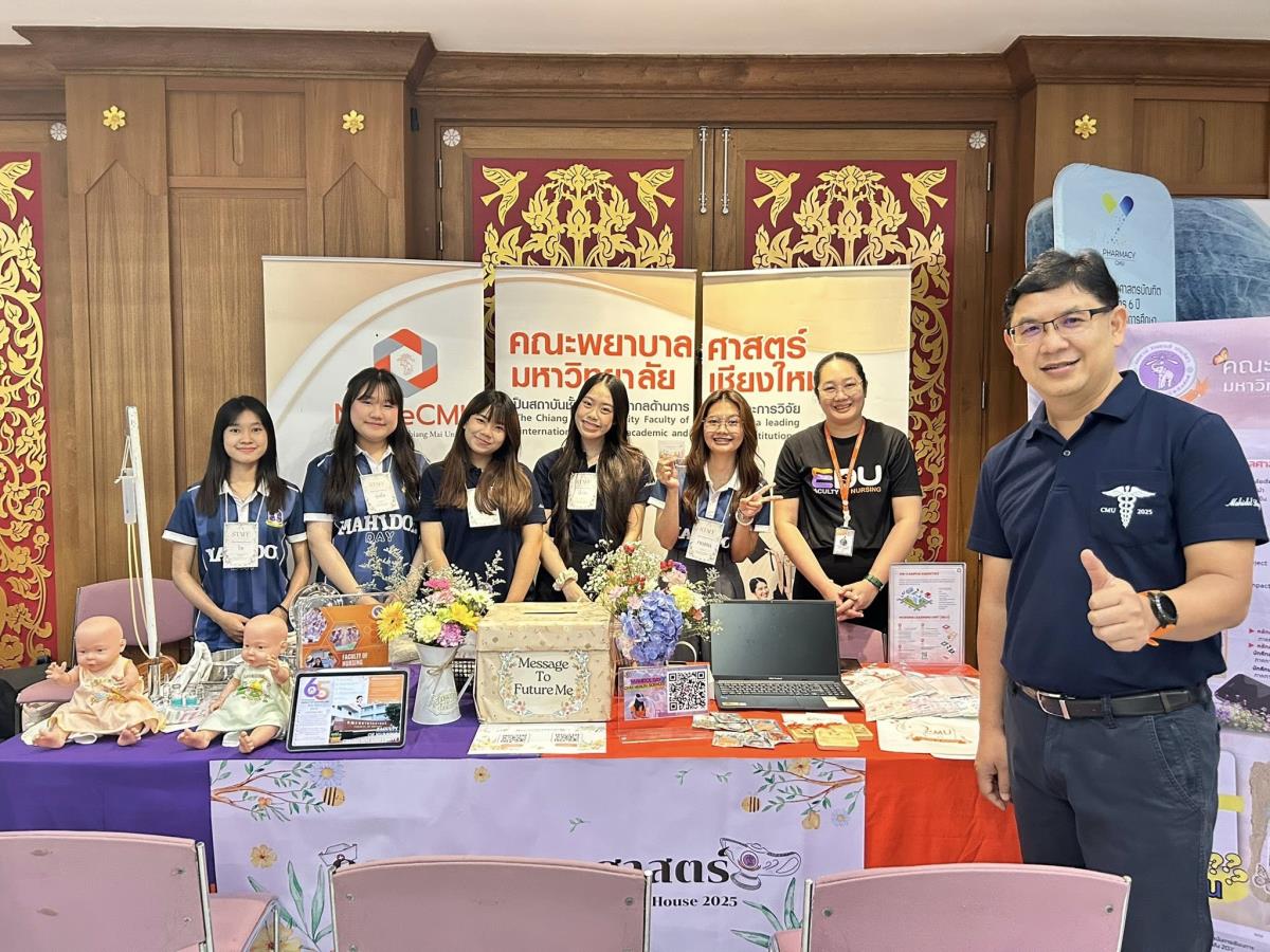 คณะพยาบาลศาสตร์ มหาวิทยาลัยเชียงใหม่ นำโดย ผู้ช่วยศาสตราจารย์ ดร.เนตรทอง นามพรม รองคณบดี ผู้ช่วยศาสตราจารย์ ดร.อนนท์ วิสุทธิ์ธนานนท์ ผู้ช่วยคณบดี ผู้ช่วยศาสตราจารย์ ดร.ชุติมา มีชำนาญ ผู้ช่วยคณบดี พร้อมด้วย คณาจารย์ และนักศึกษา ร่วมกิจกรรมโครงงานมหิดล มหาวิทยาลัยเชียงใหม่ ประจำปีการศึกษา 2568 ( Mahidol Day X CMU Health Sciences Open House 2025) จัดโดยสโมสรนักศึกษา 6 คณะวิทยาศาสตร์สุขภาพ มหาวิทยาลัยเชียงใหม่ ระหว่างวันที่ 27-28 กันยายน 2568