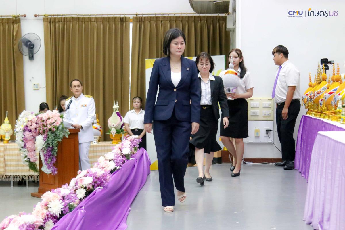 ผู้ช่วยศาสตราจารย์ ดร.ณฐิตากานต์ พยัคฆา รองคณบดีฝ่ายกิจการพิเศษและสื่อสารองค์กร พร้อมด้วย นางลาลิตยา นุ่มมีศรี เลขานุการคณะเกษตรศาสตร์ เป็นผู้แทนคณะฯ ร่วมพิธีวางพานพุ่มถวายราชสักการะ "พระบิดาแห่งวิทยาศาสตร์ไทย" ในงานสัปดาห์วิทยาศาสตร์แห่งชาติ ส่วนภูมิภาค ประจำปี 2568 ในวันจันทร์ที่ 18 สิงหาคม พ.ศ. 2568 ณ ห้อง SCB2100 อาคาร 40 ปี คณะวิทยาศาสตร์ มหาวิทยาลัยเชียงใหม่