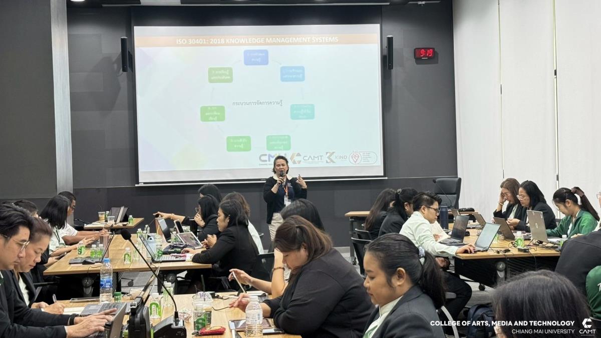 ศูนย์การพัฒนาองค์ความรู้และการจัดการนวัตกรรม (Knowledge and Innovation Development: KIND) วิทยาลัยศิลปะ สื่อ และเทคโนโลยี มหาวิทยาลัยเชียงใหม่ ร่วมกับ ธนาคารเพื่อการเกษตรและสหกรณ์การเกษตร (ธ.ก.ส) โดยมี ผู้ช่วยศาสตราจารย์ ดร.อัจฉรา คำอักษร ผู้ปฏิบัติหน้าที่ช่วยคณบดี ด้านการพัฒนาองค์ความรู้และการจัดการนวัตกรรม/ หัวหน้าศูนย์การพัฒนาองค์ความรู้และนวัตกรรม พร้อมคณะทำงาน ดำเนินกิจกรรมการฝึกอบรมเชิงปฏิบัติการ เรื่อง การจัดทำเอกสารตามกรอบมาตรฐาน ISO 30401: 2018 (ครั้งที่ 2) การจัดทำระเบียบวิธีปฏิบัติ