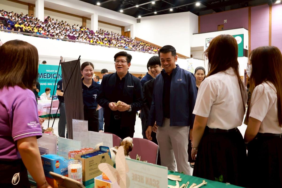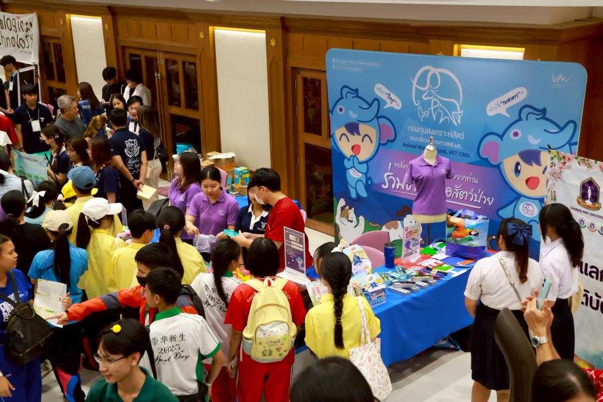 เมื่อวันที่ 27 กันยายน 2568 รศ. ดร. น.สพ.ธวัชชัย สิงห์หล้า ผู้ช่วยคณบดีฝ่ายศิษย์เก่าและนักศึกษาสัมพันธ์ พร้อมด้วย ผศ. ดร. สพ.ญ.ศิริวรรณ ตั้งยืนยง ผู้ช่วยคณบดีฝ่ายประชาสัมพันธ์และภาพลักษณ์องค์กร คณะสัตวแพทยศาสตร์ มหาวิทยาลัยเชียงใหม่ ร่วมพิธีเปิดงาน Mahidol Day x CMU Health Sciences Open House 2025 จัดโดยสโมสรนักศึกษา 6 คณะสาขาวิทยาศาสตร์สุขภาพ ระหว่างวันที่ 27 - 28 กันยายน 2568 ณ หอประชุมมหาวิทยาลัยเชียงใหม่ โดยภายในงานมีนิทรรศการและบริการด้านสุขภาพจาก 6 คณะ พร้อมด้วยกิจกรรมวิชาการและบูธบริการสุขภาพรวมถึงกองทุนสงเคราะห์สัตว์ในพระอุปถัมภ์ฯ ที่มาร่วมให้ข้อมูลและจัดกิจกรรมแก่ นักเรียน นักศึกษา และผู้สนใจตลอดงาน
