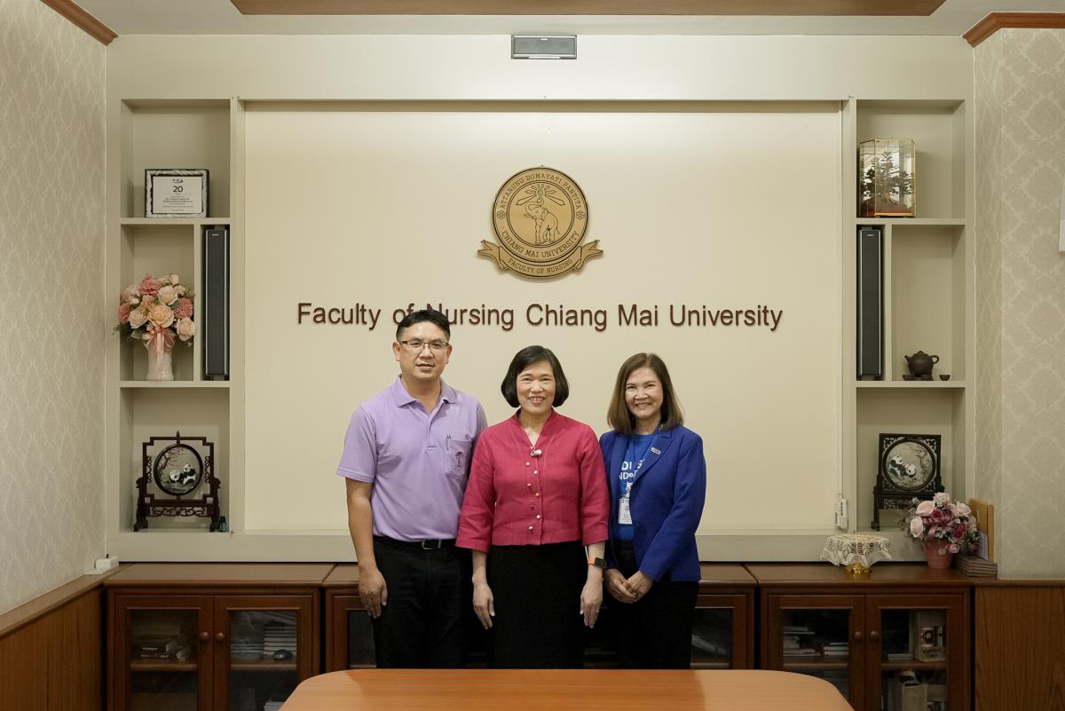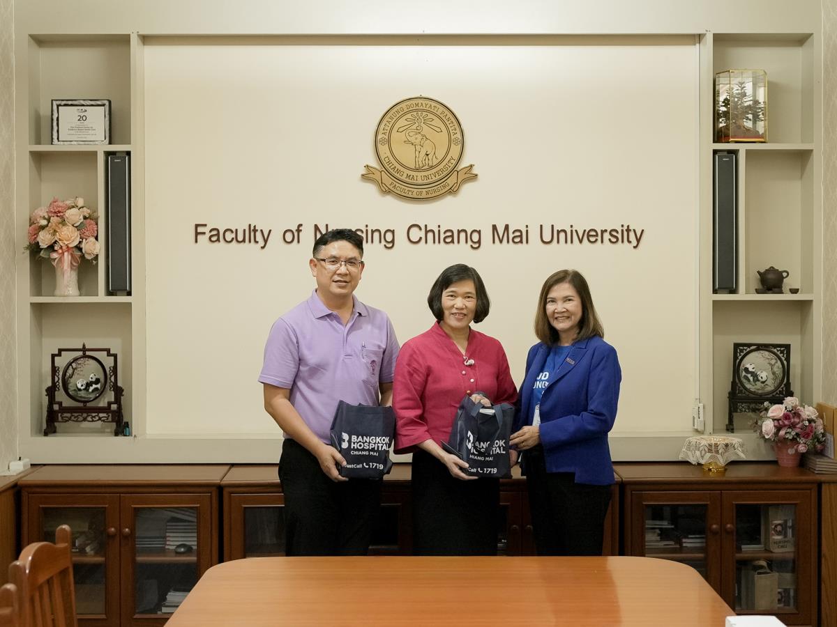 ในโอกาสนี้คณะผู้แทนจากโรงพยาบาลกรุงเทพเชียงใหม่ เข้าเยี่ยมคารวะ ผู้ช่วยศาสตราจารย์ ดร.สุภารัตน์ วังศรีคูณ คณบดีคณะพยาบาลศาสตร์ เพื่อปรึกษาหารือความร่วมมือด้านวิชาการระหว่างคณะพยาบาลศาสตร์กับโรงพยาบาลในเครือกรุงเทพ ณ ห้องรับรองสำนักงานคณบดี อาคาร 4 คณะพยาบาลศาสตร์