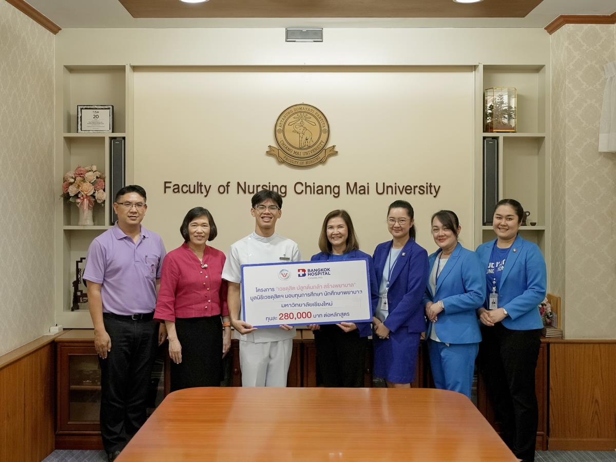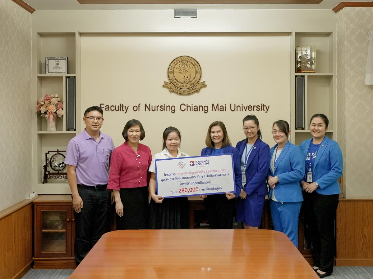 วันอังคารที่ 7 ตุลาคม 2568 คณะผู้แทนจากโรงพยาบาลกรุงเทพเชียงใหม่ นำโดย คุณจินตนา นันทหทัย ผู้อำนวยการฝ่ายการพยาบาล กลุ่ม 4 เข้ามอบทุนการศึกษาให้แก่ นายพัชรชัย เกษมจิตต์ นายจิรายุ รัศมี และ นางสาวญาณิศา วงศ์สว่างกุล นักศึกษาคณะพยาบาลศาสตร์ มหาวิทยาลัยเชียงใหม่ (ทุนละ 280,000 บาทต่อหลักสูตร) ภายใต้โครงการ "มูลนิธิเวชดุสิตฯ ปลูกต้นกล้า สร้างพยาบาล" ของมูลนิธิเวชดุสิต ในพระอุปถัมภ์สมเด็จพระเจ้าพี่นางเธอเจ้าฟ้ากัลยานิวัฒนา กรมหลวงนราธิวาชราชนครินทร์ เพื่อสนับสนุนและส่งเสริมการศึกษาสำหรับผู้ที่มีผลการเรียนดี แต่ขาดแคลนทุนทรัพย์ ช่วยให้สามารถได้มีโอกาสศึกษาต่อ พัฒนาเป็นพยาบาลที่มีความรู้ ความสามารถ ในการดูแลรักษาผู้คนและช่วยเหลือสังคมต่อไป