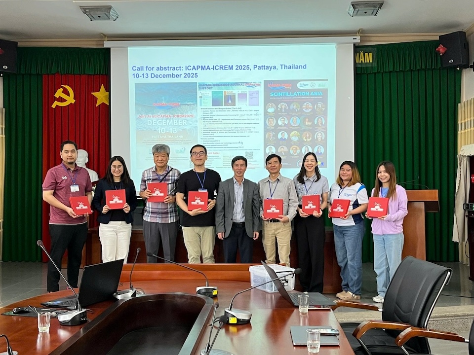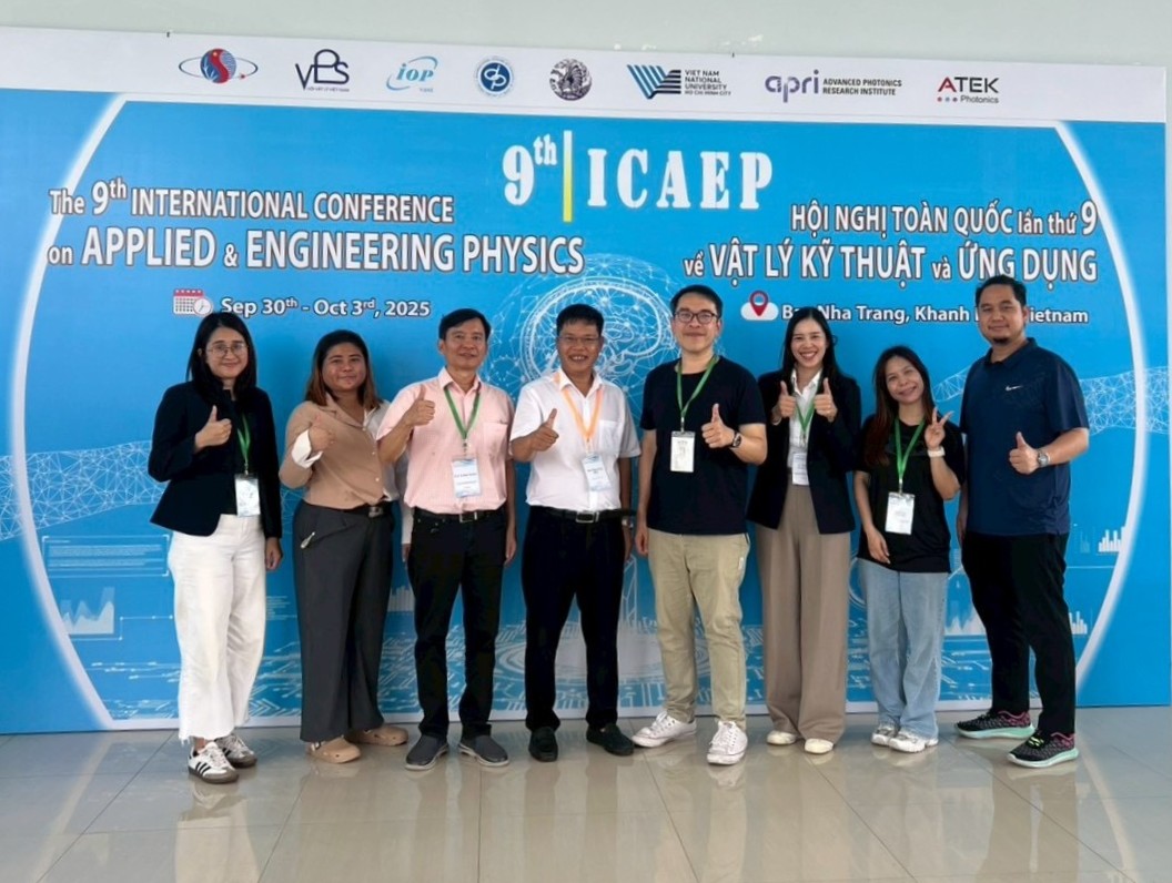 อาจารย์และนักวิจัยได้เข้าร่วมการประชุม The 9th Academic Conference on Natural Science for Young Scientists, Master and PhD Students from ASEAN Countries (CASEAN-9) และ The 9th International Conference on Applied and Engineering Physics (iCAEP-9) ณ เมือง Nha Trang ประเทศเวียดนาม ซึ่งเป็นเวทีสำคัญระดับนานาชาติด้านฟิสิกส์ประยุกต์และวิศวกรรม โดยมีนักวิจัยจากหลายประเทศเข้าร่วมนำเสนอผลงาน และหารือแนวทางความร่วมมือด้านวัสดุเรืองแสง และเครื่องตรวจวัดรังสี
