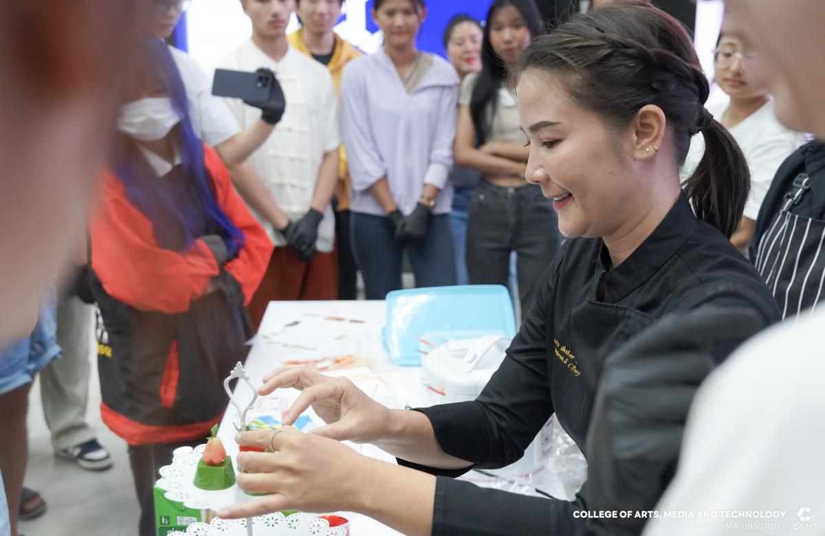 หน่วยพัฒนาคุณภาพนักศึกษาวิทยาลัยศิลปะ สื่อ และเทคโนโลยี จัดกิจกรรม "ชุบชูใจ ขนมไทยลูกชุบ" A Treat for the Soul: The Look Choop Thai Dessert Workshop! โดยมีวัตถุประสงค์เพื่อ ให้นักศึกษาไทยเเละนักศึกษาต่างชาติ ได้ร่วมเรียนรู้การทำขนมไทย และรังสรรค์ผลงานได้อย่างอิสระเพื่อผ่อนคลายความเครียด ผ่านการปั้นขนมไทยลูกชุบ ซึ่งกิจกรรมครั้งนี้ได้รับเกียรติจากเชฟส้ม คุณหทัยรัตน์ เชฟดีกรี แชมป์จากเวที Thailand Junior Chef Championship 2016 และเจ้าของ Dream’s Baker Studio คาเฟ่และสตูดิโอสอนทำขนมเล็กๆ ในเชียงใหม่ พร้อมด้วยทีมงานได้ให้เกียรติมาเป็นวิทยากรสอนในกิจกรรมดังกล่าว โดยมีนักศึกษาให้ความสนใจอย่างมาก เมื่อวันที่ 24 กันยายน2568 ณ ห้อง112 อาคารวิทยาลัยศิลปะ สื่อ และเทคโนโลยี มหาวิทยาลัยเชียงใหม่