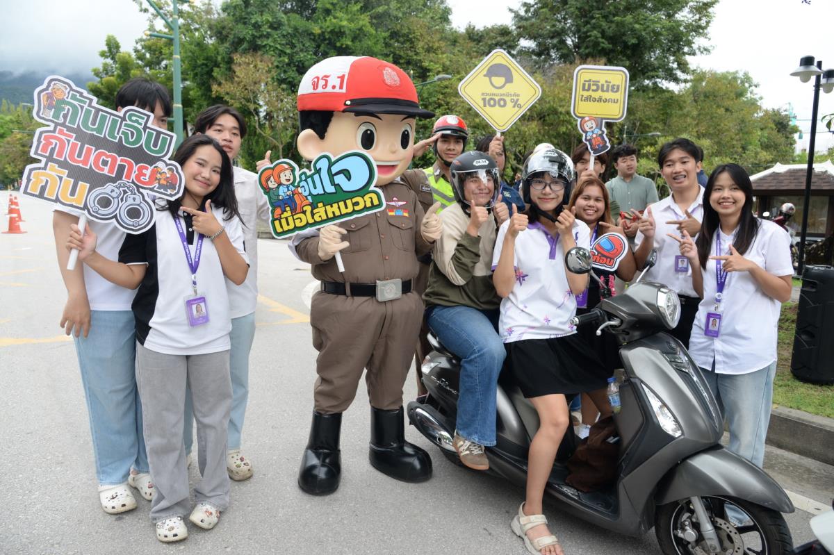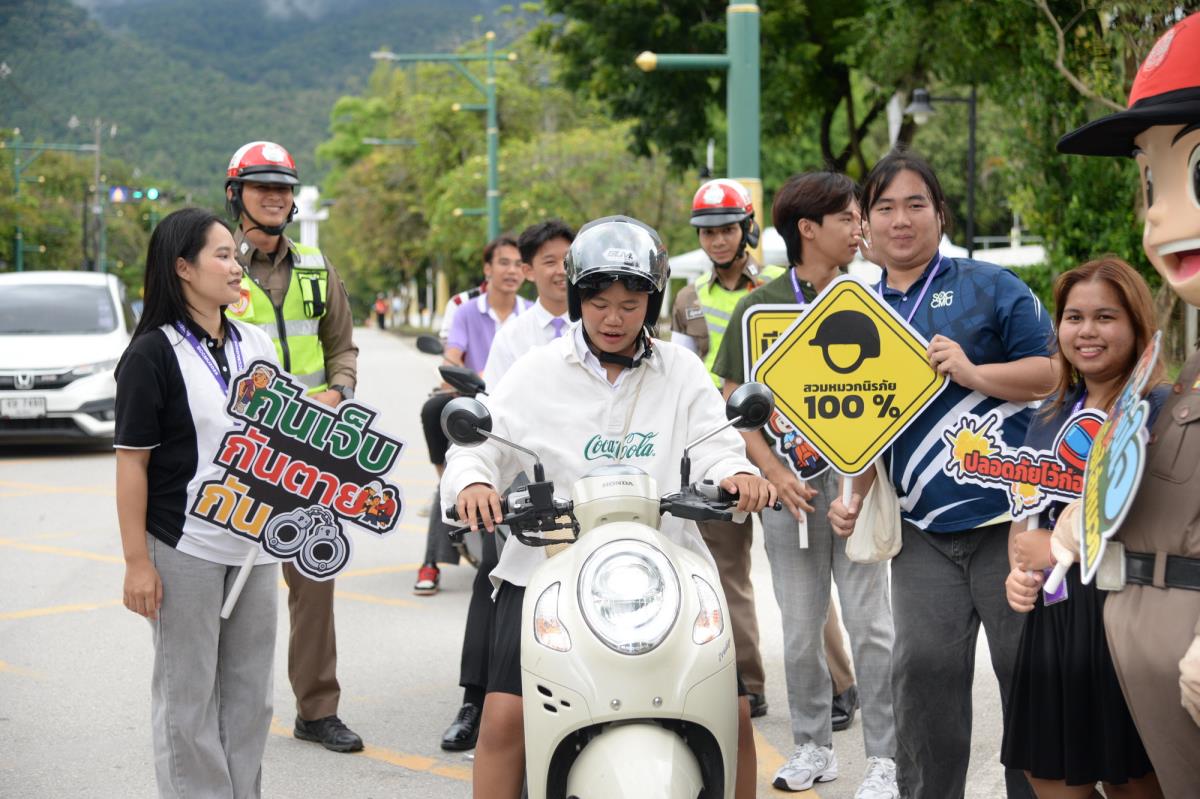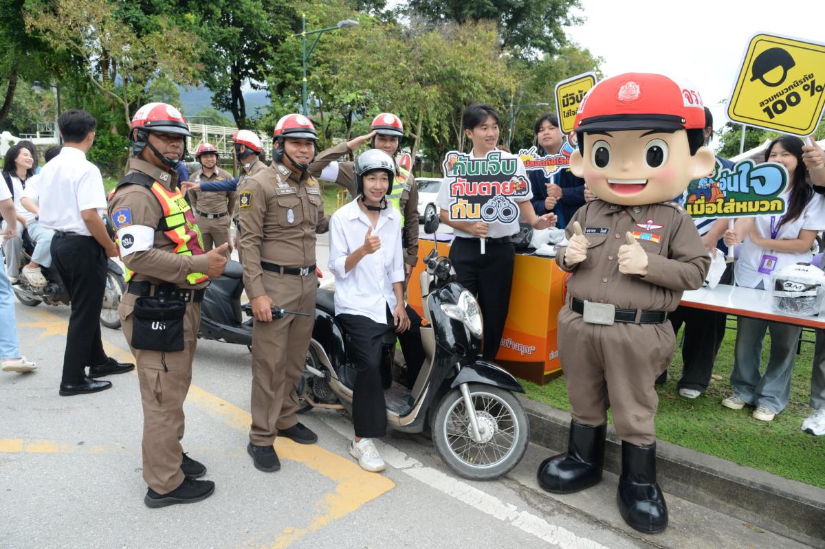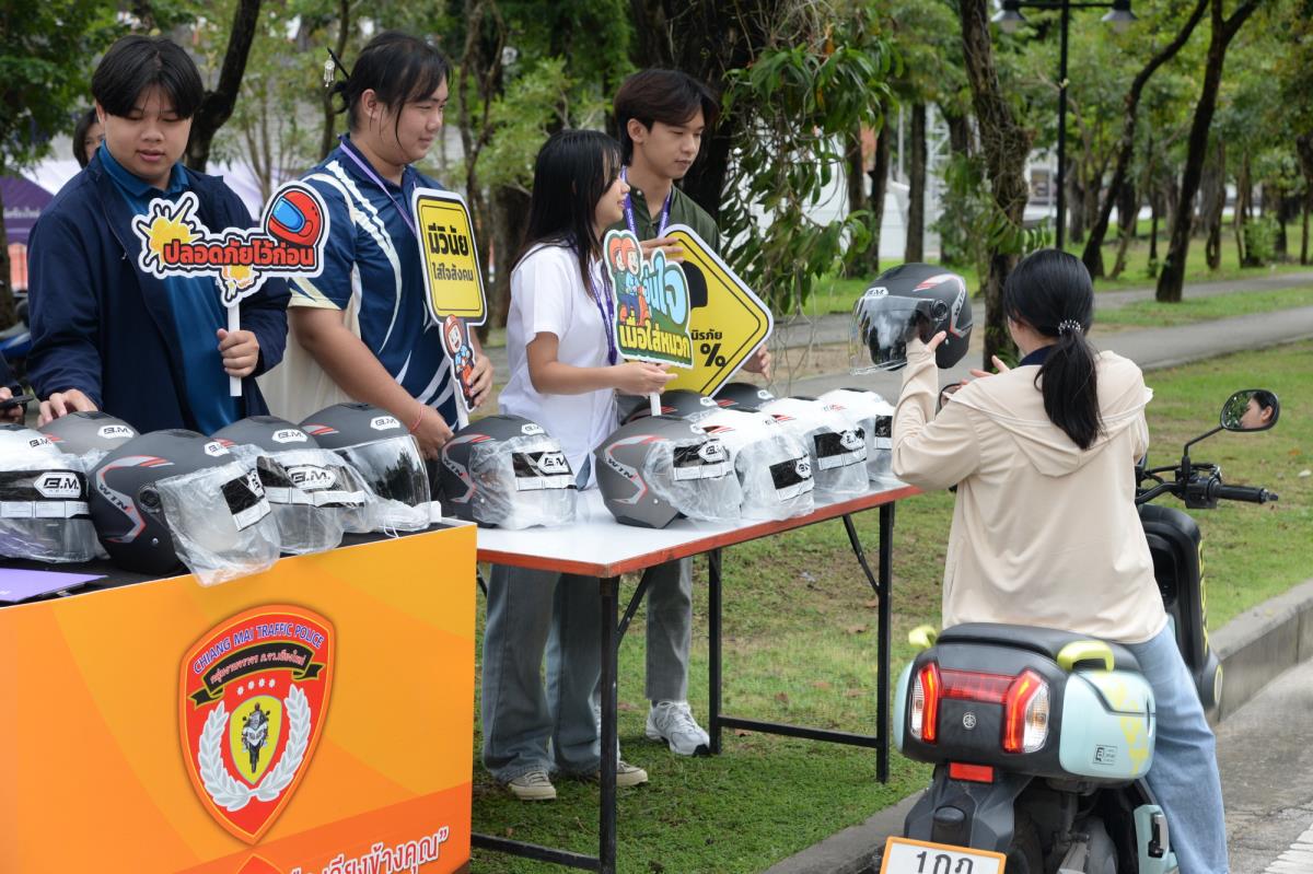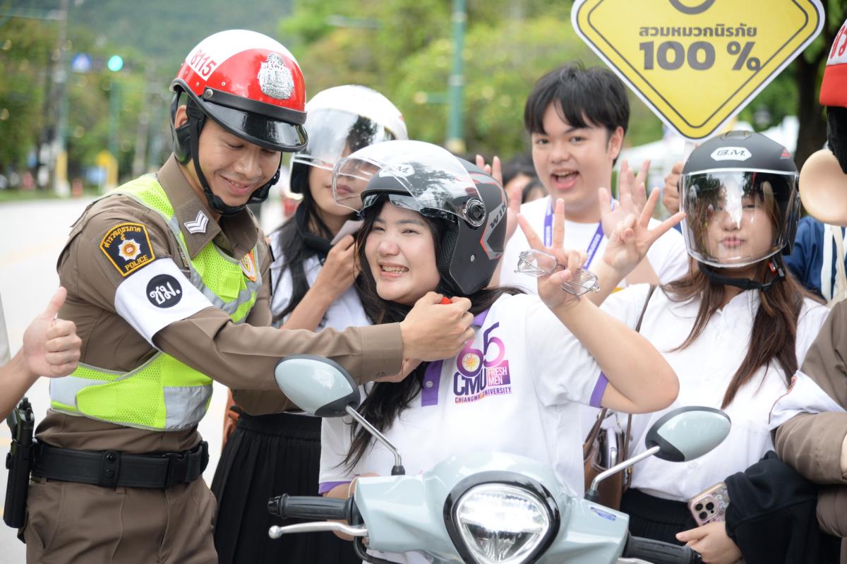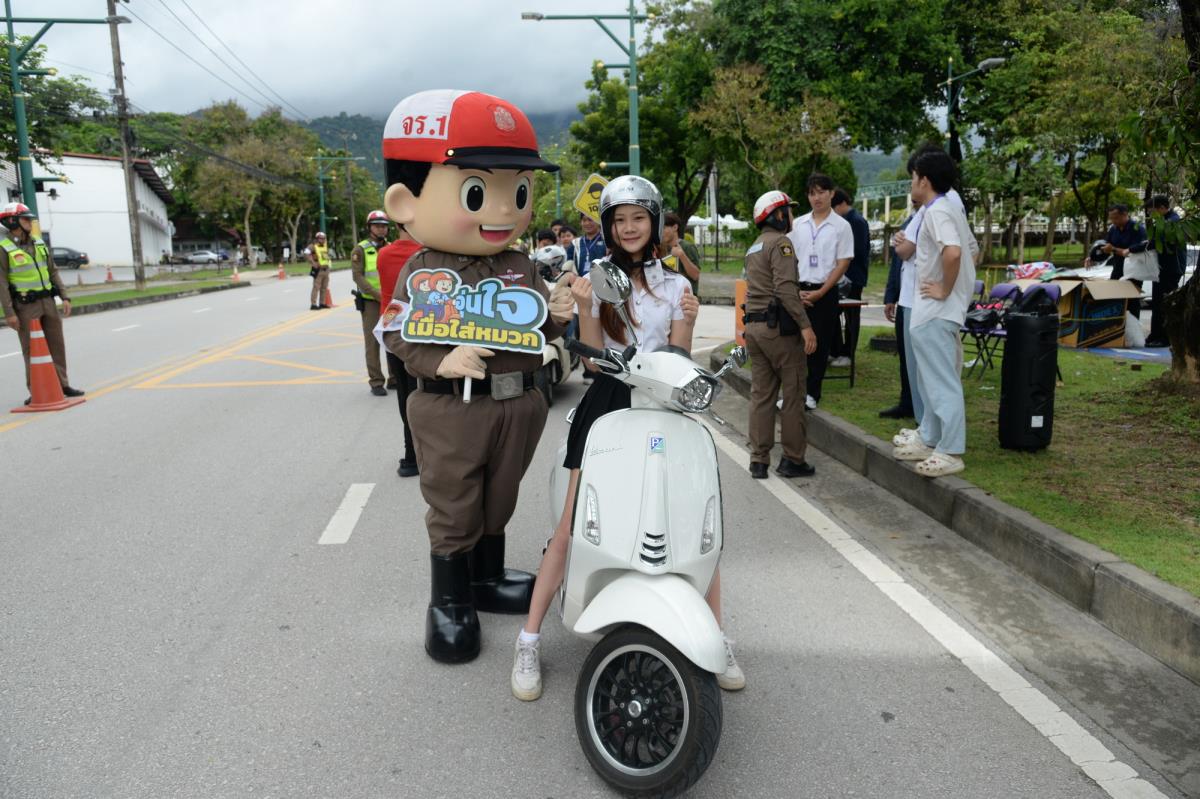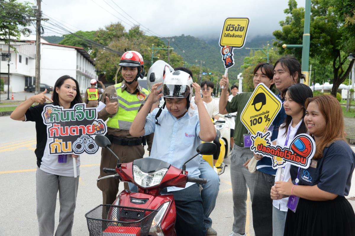 ผู้ช่วยศาสตราจารย์ ดร.จิรวัฒน์ พัสระ ผู้ช่วยอธิการบดีมหาวิทยาลัยเชียงใหม่ และพันตำรวจเอก เจน โสภา ผู้กำกับการกลุ่มงานจราจร ตำรวจภูธรจังหวัดเชียงใหม่ ร่วมกิจกรรมรณรงค์แจกหมวกนิรภัย ให้แก่นักศึกษาและบุคคลที่สัญจรภายในมหาวิทยาลัยเชียงใหม่ เพื่อสร้างความปลอดภัยในการขับขี่รถจักรยานยนต์ ลดปัญหาของการบาดเจ็บและเสียชีวิตจากอุบัติเหตุ ตลอดจนการสร้างระเบียบวินัยในการขับขี่ยานพาหนะให้ถูกต้องตามกฎจราจร ณ ลานด้านหน้า CMU 60th Years Main Stadium ศูนย์กีฬาและสุขภาพ มหาวิทยาลัยเชียงใหม่ วันพุธที่ 1 ตุลาคม พ.ศ. 2568