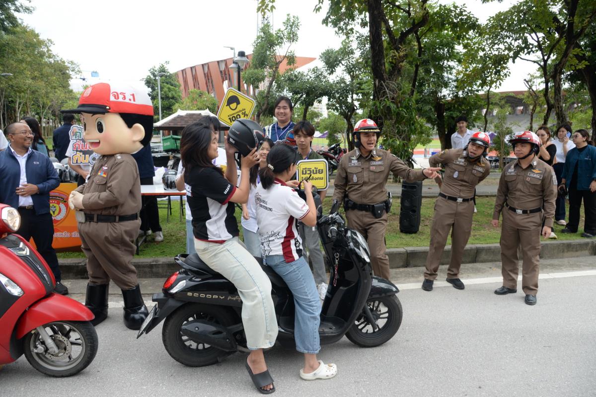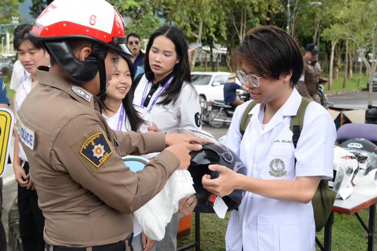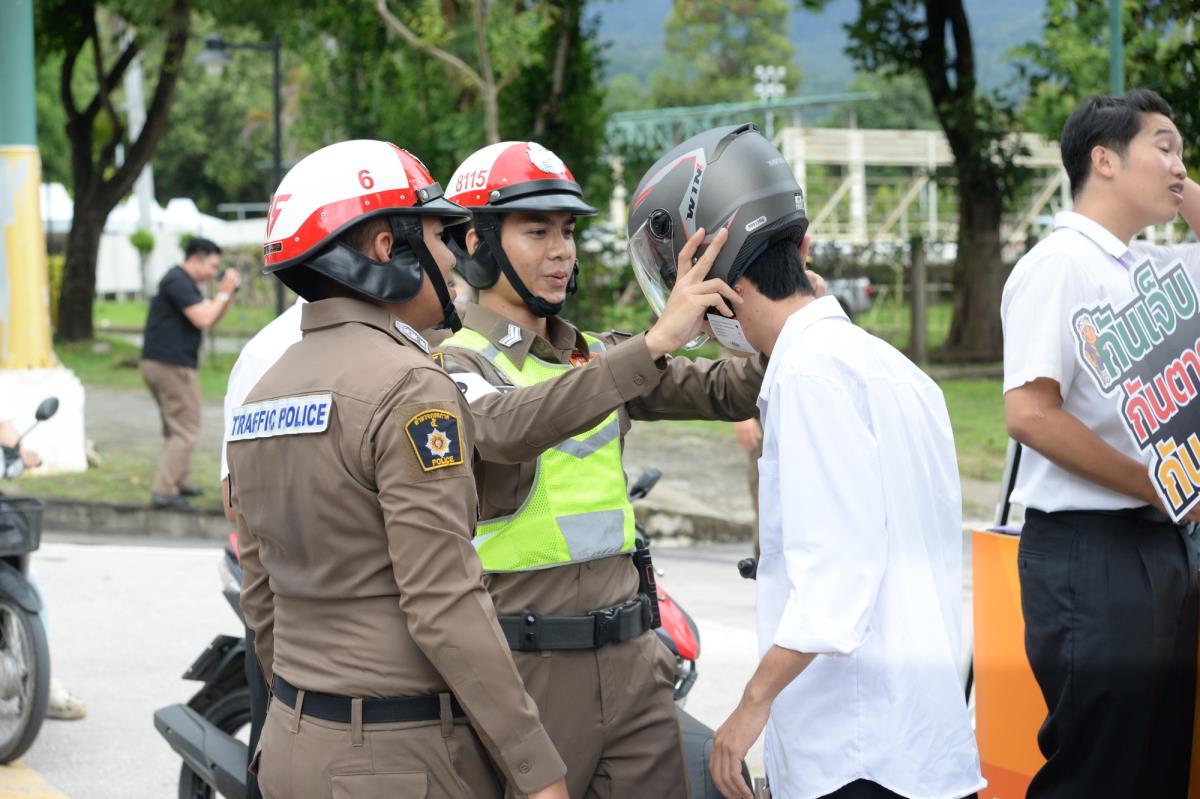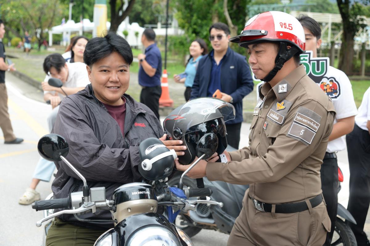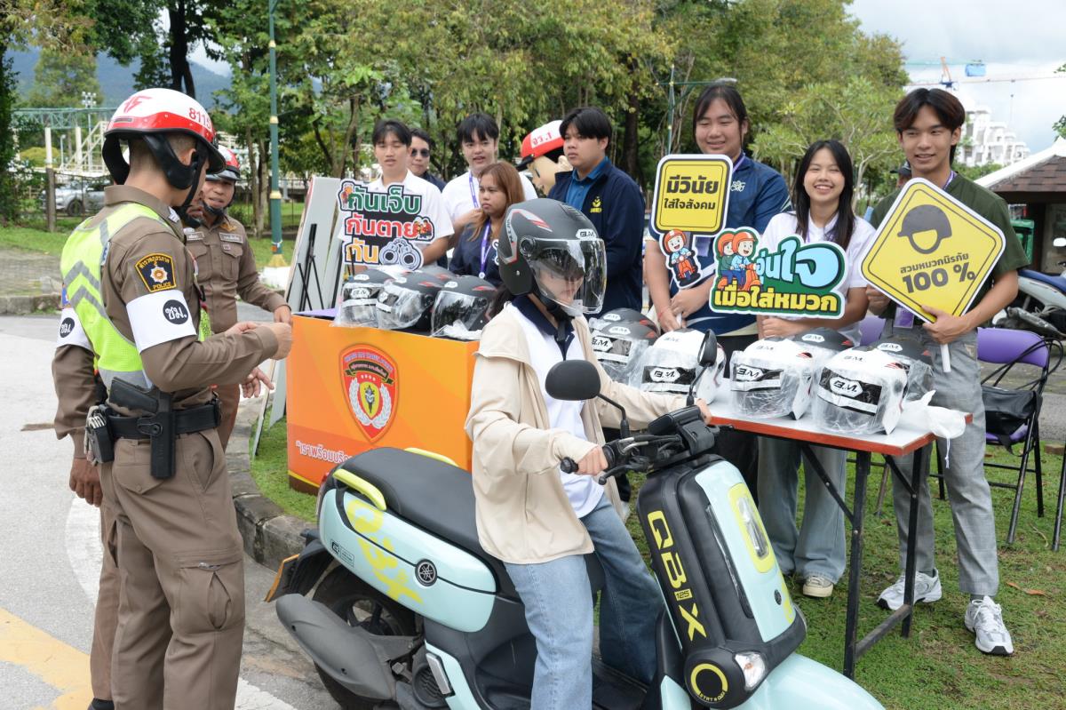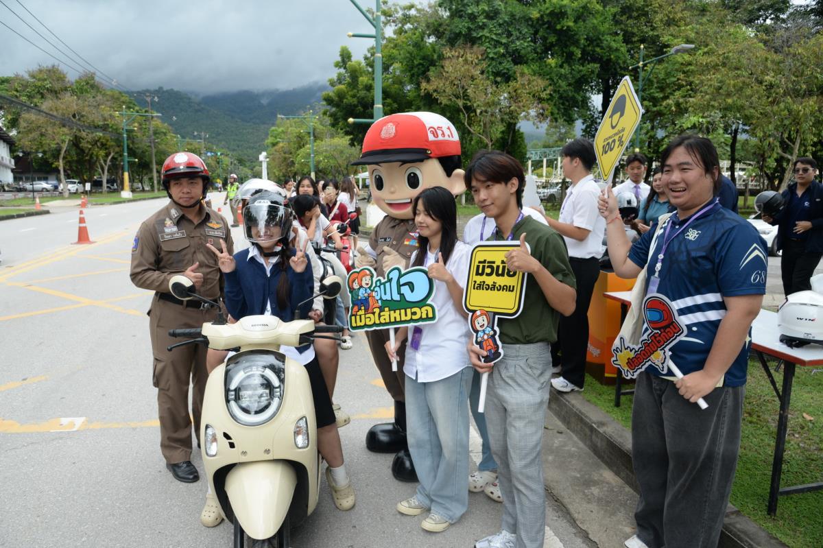 ผู้ช่วยศาสตราจารย์ ดร.จิรวัฒน์ พัสระ ผู้ช่วยอธิการบดีมหาวิทยาลัยเชียงใหม่ และพันตำรวจเอก เจน โสภา ผู้กำกับการกลุ่มงานจราจร ตำรวจภูธรจังหวัดเชียงใหม่ ร่วมกิจกรรมรณรงค์แจกหมวกนิรภัย ให้แก่นักศึกษาและบุคคลที่สัญจรภายในมหาวิทยาลัยเชียงใหม่ เพื่อสร้างความปลอดภัยในการขับขี่รถจักรยานยนต์ ลดปัญหาของการบาดเจ็บและเสียชีวิตจากอุบัติเหตุ ตลอดจนการสร้างระเบียบวินัยในการขับขี่ยานพาหนะให้ถูกต้องตามกฎจราจร ณ ลานด้านหน้า CMU 60th Years Main Stadium ศูนย์กีฬาและสุขภาพ มหาวิทยาลัยเชียงใหม่ วันพุธที่ 1 ตุลาคม พ.ศ. 2568