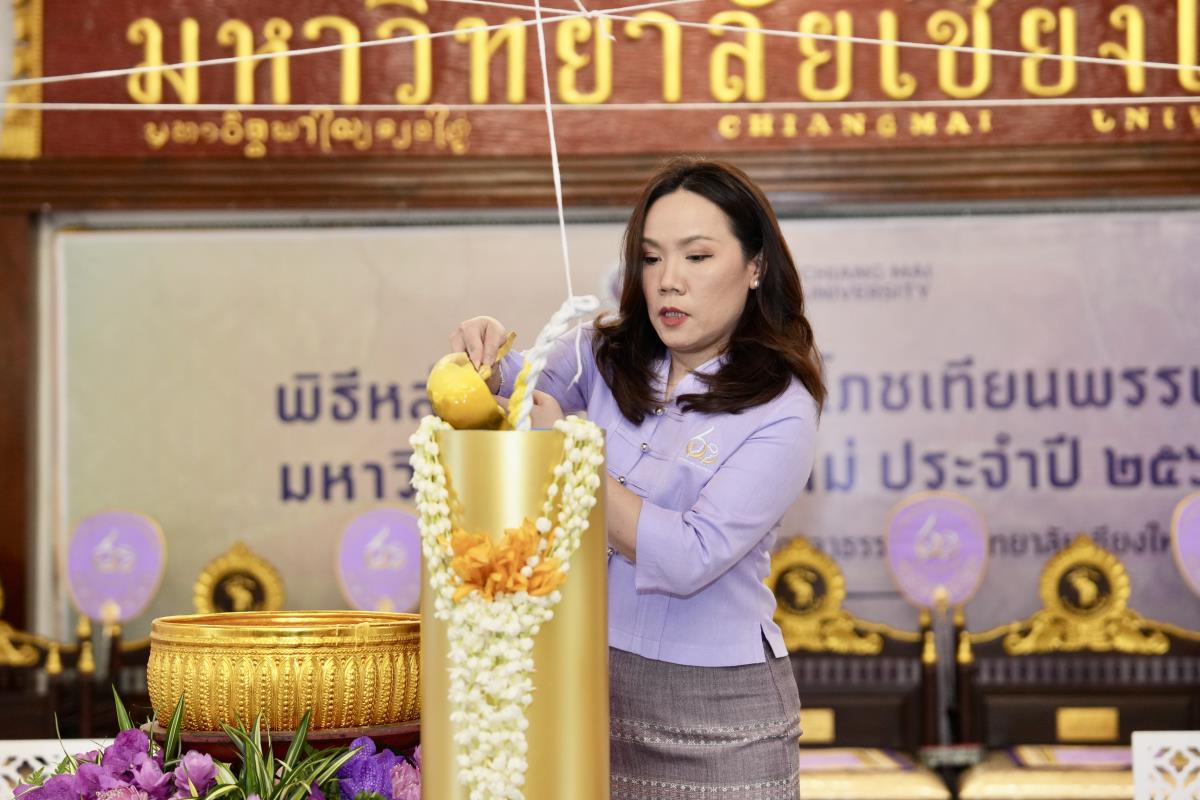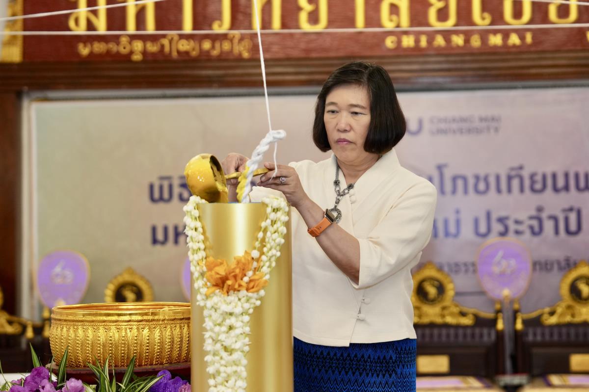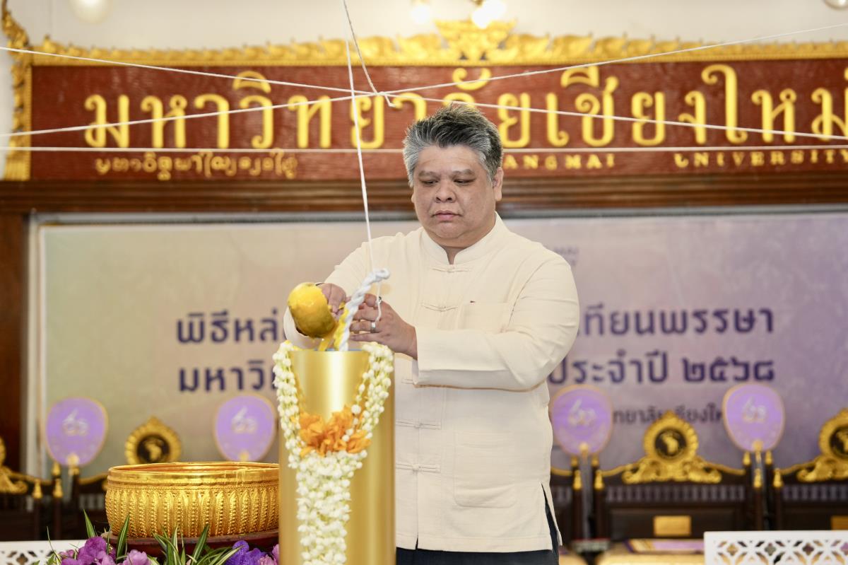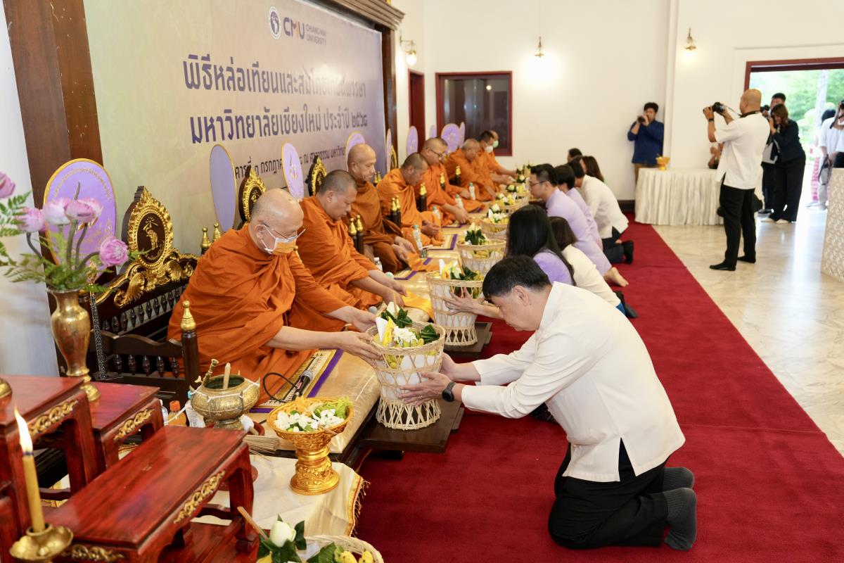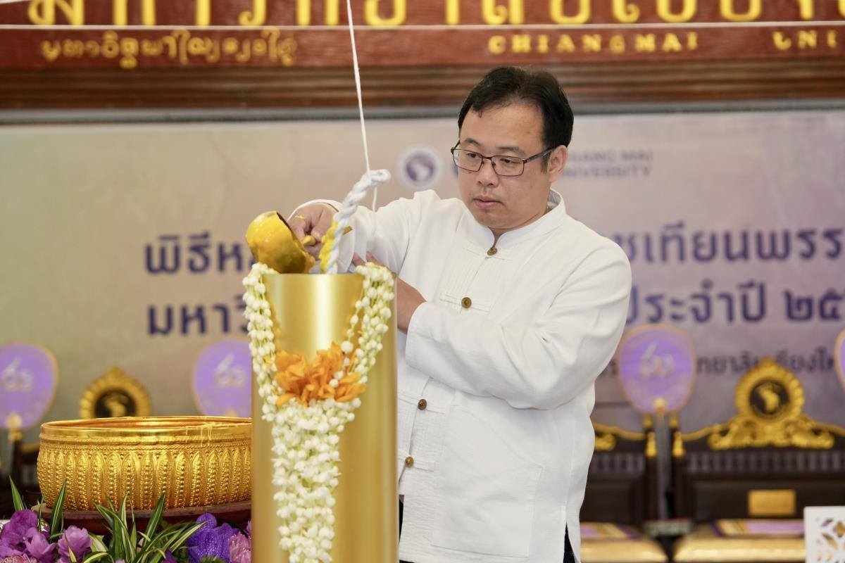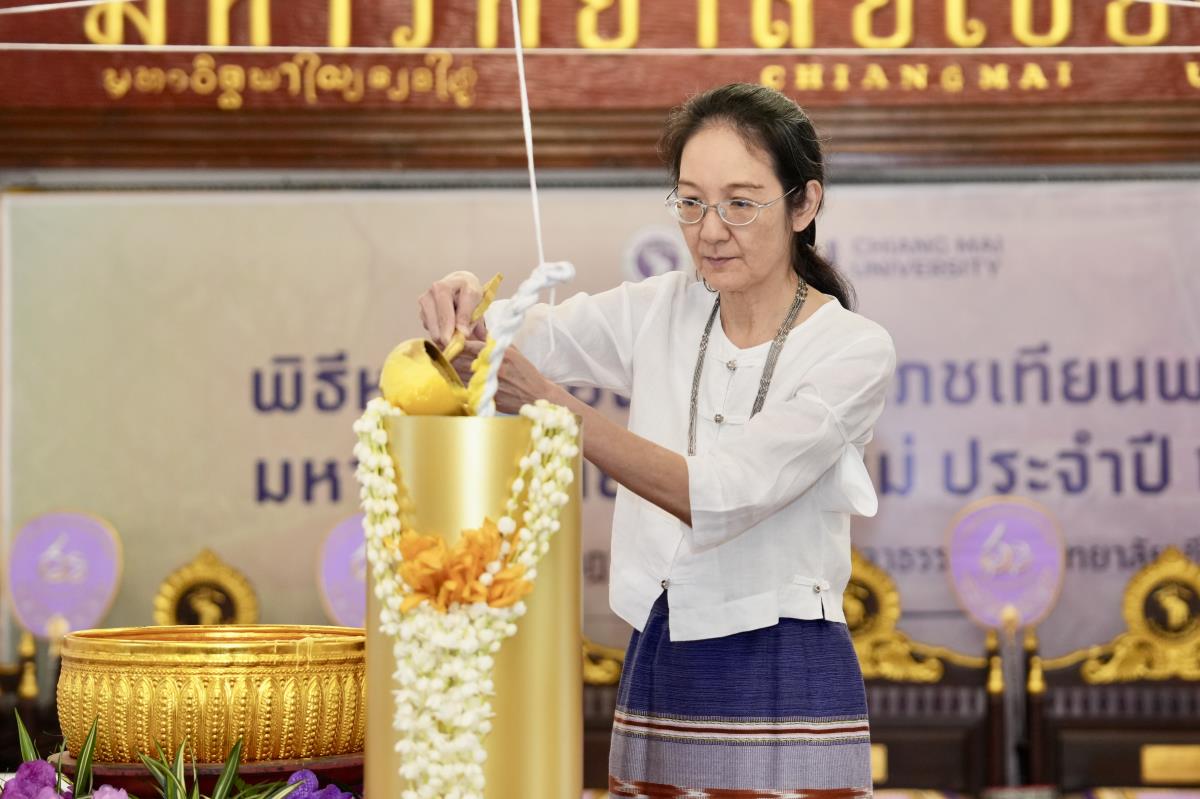 ศาสตราจารย์ ดร.นพ.พงษ์รักษ์ ศรีบัณฑิตมงคล อธิการบดีมหาวิทยาลัยเชียงใหม่ เป็นประธานในพิธีหล่อเทียนและสมโภชเทียนพรรษามหาวิทยาลัยเชียงใหม่ ประจำปี 2568 โดยมีศาสตราจารย์ปฏิบัติ ดร.เอกชัย มหาเอก รองอธิการบดี กล่าวรายงาน พร้อมด้วยคณะผู้บริหาร คณาจารย์ เจ้าหน้าที่จากทุกส่วนงานและนักศึกษามหาวิทยาลัยเชียงใหม่ร่วมพิธี เพื่ออนุรักษ์ศิลปวัฒนธรรมประเพณีอันดีงาม ร่วมสืบสานมรดกทางวัฒนธรรมที่มีคุณค่าให้คงอยู่สืบไป ณ ศาลาธรรม มหาวิทยาลัยเชียงใหม่ เมื่อวันอังคารที่ 1 กรกฎาคม พ.ศ.2568