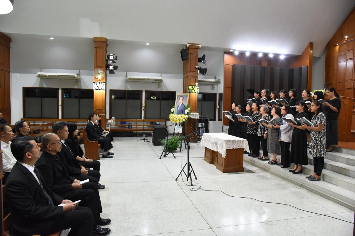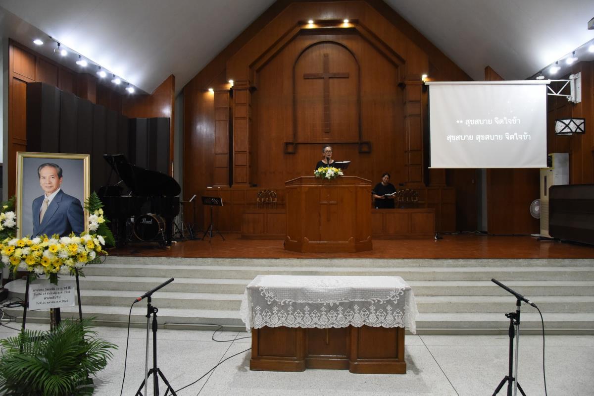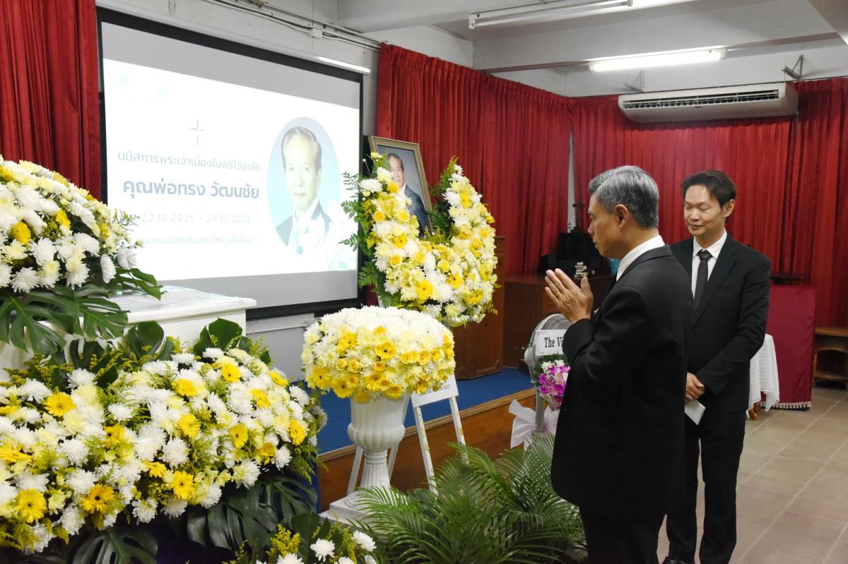 ศาสตราจารย์ ดร.นพ.พงษ์รักษ์ ศรีบัณฑิตมงคล อธิการบดี พร้อมด้วยคณะผู้บริหารมหาวิทยาลัยเชียงใหม่ ร่วมแสดงความไว้อาลัยและร่วมพิธีนมัสการพระเจ้าเนื่องในการล่วงหลับไปของ คุณพ่อทรง วัฒนชัย ซึ่งเป็นบิดาของ รองศาสตราจารย์ ดร.ปิติวัฒน์ วัฒนชัย ผู้อำนวยการอุทยานวิทยาศาสตร์และเทคโนโลยี มหาวิทยาลัยเชียงใหม่ ณ คริสตจักรจีนเชียงใหม่ (ฟ้าฮ่าม) ต.วัดเกต อ.เมือง จ.เชียงใหม่ วันพุธที่ 22 ตุลาคม พ.ศ. 2568