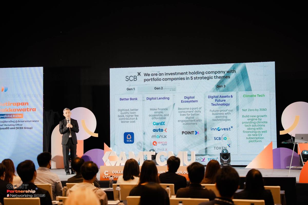 และมีการบรรยายพิเศษในหัวข้อ “การขับเคลื่อนองค์กรอย่างยั่งยืนในยุคดิจิทัล” โดย คุณสุธีรพันธุ์ สักรวัตร Chief Customer Officer SCBX ได้ร่วมแบ่งปันมุมมองและกลยุทธ์ในการปรับตัวขององค์กรขนาดใหญ่ท่ามกลางกระแสความเปลี่ยนแปลงทางเทคโนโลยี พร้อมเน้นย้ำถึงความสำคัญของการนำนวัตกรรมมาใช้ในการสร้างการเติบโตรวมถึงสร้างวัฒนธรรมองค์กรที่พร้อมรับการเปลี่ยนแปลง และการพัฒนาบุคลากรให้มีทักษะที่สอดรับกับอนาคต ซึ่งสร้างแรงบันดาลใจให้นักศึกษาและผู้เข้าร่วมงานได้มีแนวทางในการพัฒนาศักภาพของตนเองและของบริษัท) ในวันพุธที่ 17 กันยายน 2568 ณ ห้องประชุม Nimman Convention Centre (One Nimman)