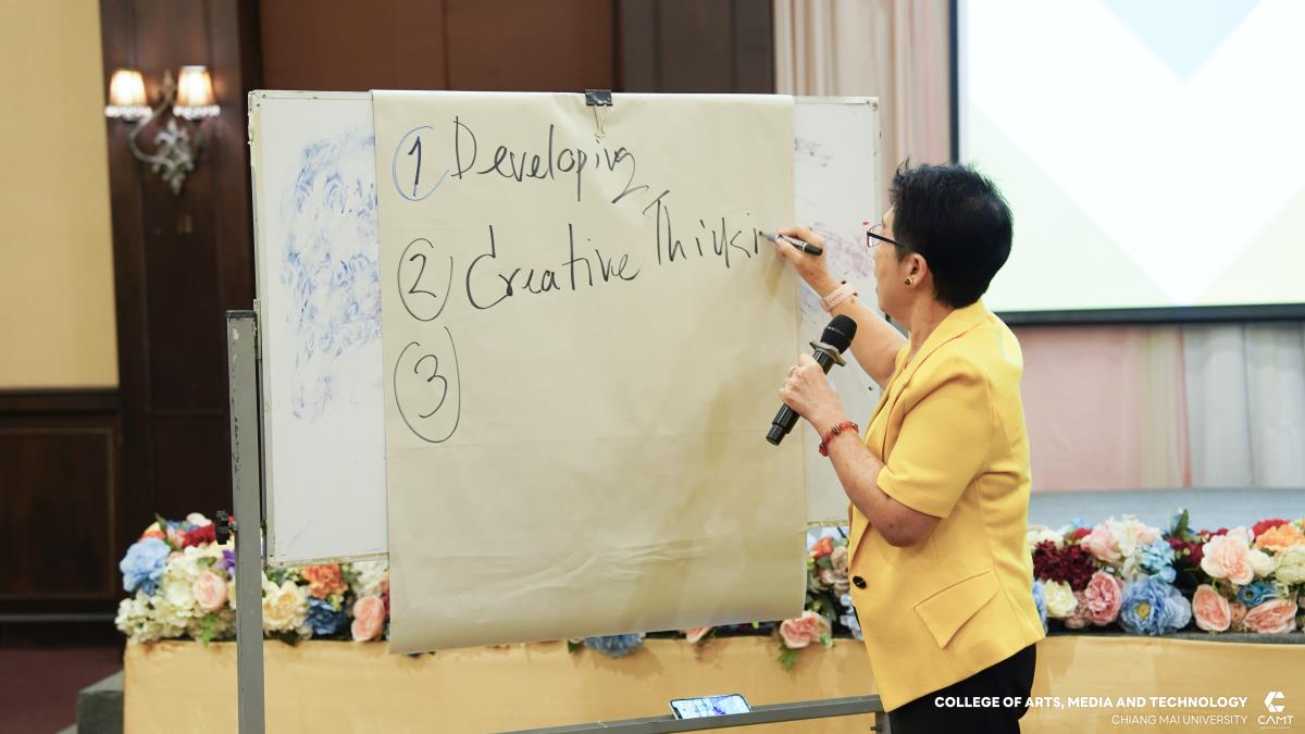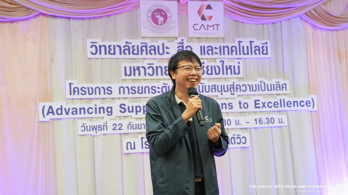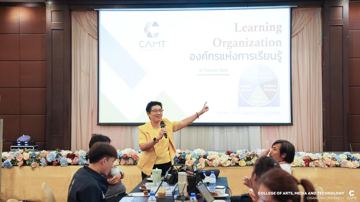 วิทยาลัยศิลปะ สื่อ และเทคโนโลยี มหาวิทยาลัยเชียงใหม่ จัดโครงการยกระดับงานสนับสนุนสู่ความเป็นเลิศ (Advancing Support Operations to Excellence) โดยมีวัตถุประสงค์เพื่อพัฒนาบุคลากรให้มีทักษะสอดคล้องกับแนวคิดองค์กรแห่งการเรียนรู้ (Learning Organization) และชี้แจงแนวทางการดำเนินงานตามแผนยุทธศาสตร์ประจำปี 2569 ของวิทยาลัยฯ การอบรมครั้งนี้ได้รับเกียรติจากวิทยากรผู้เชี่ยวชาญด้านการบริหารจัดการองค์กร อาจารย์ ดร.เบ็ญจวรรณ บุญใจเพ็ชร ตำแหน่งผู้อำนวยการศูนย์พัฒนาบุคลากรทางธุรกิจ BHD Center พร้อมด้วยคณะผู้บริหารจากวิทยาลัยศิลปะ สื่อ และเทคโนโลยี มาให้ความรู้และแลกเปลี่ยนประสบการณ์แก่บุคลากรสายสนับสนุนของวิทยาลัยฯ เพื่อสร้างความเข้าใจในทิศทางและเป้าหมายขององค์กรอย่างทั่วถึง รวมทั้งส่งเสริมการทำงานร่วมกันเป็นทีม และเพิ่มประสิทธิภาพในการปฏิบัติงานเพื่อรองรับการเปลี่ยนแปลงในยุคดิจิทัล เมื่อวันที่ 22 กันยายน 2568 ณ โรงแรมเชียงใหม่แกรนด์วิว