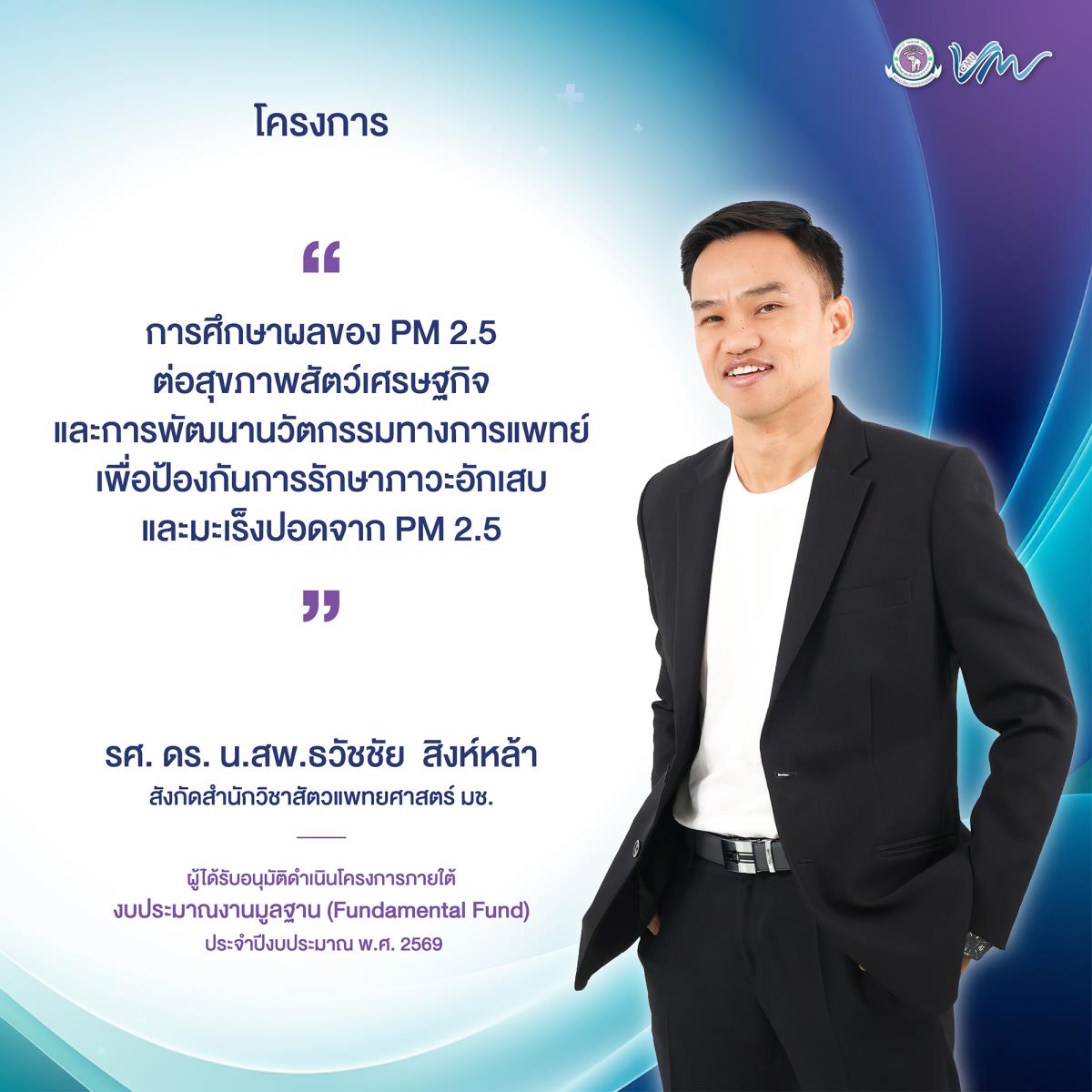 โครงการ “การศึกษาผลของ PM2.5 ต่อสุขภาพสัตว์เศรษฐกิจ และการพัฒนานวัตกรรมทางการแพทย์เพื่อป้องกันการรักษาภาวะอักเสบและมะเร็งปอดจาก PM2.5