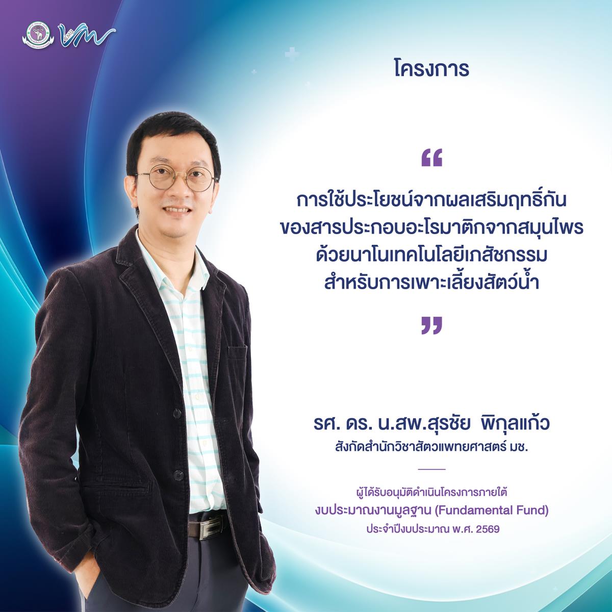 ขอแสดงความยินดีกับคณาจารย์สังกัดสำนักวิชาสัตวแพทยศาสตร์ ผู้รับอนุมัติงบประมาณเพื่อสนับสนุนงานมูลฐาน (Fundamental Fund) ประจำปีงบประมาณ พ.ศ. 2569