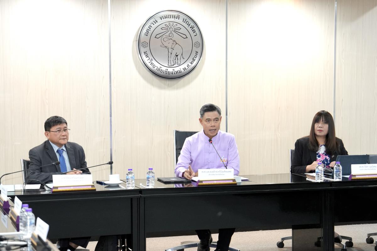 ศาสตราจารย์ ดร.นายแพทย์ พงษ์รักษ์ ศรีบัณฑิตมงคล อธิการบดีมหาวิทยาลัยเชียงใหม่ ให้การต้อนรับนายวิรัตน์ ศรีอมรกิจกุล นายกสมาคมการค้าอุตสาหกรรมไทยเซมิคอนดักเตอร์ (Thai Semiconductor Industry Trade Association: THSIA) และคณะฯ ในโอกาสเยี่ยมชมมหาวิทยาลัยเชียงใหม่ และประชุมหารือเกี่ยวกับความร่วมมือทางด้านเซมิคอนดักเตอร์ ภาคเหนือระหว่างสมาคมการค้าอุตสาหกรรมไทยเซมิคอนดักเตอร์ และมหาวิทยาลัยเชียงใหม่ เพื่อร่วมกันพัฒนาบุคลากรและองค์ความรู้ในด้านเทคโนโลยีเซมิคอนดักเตอร์ ณ ห้องประชุมพระยาศรีวิสารวาจา สำนักงานมหาวิทยาลัย มหาวิทยาลัยเชียงใหม่ เมื่อวันศุกร์ที่ 17 ตุลาคม พ.ศ.2568