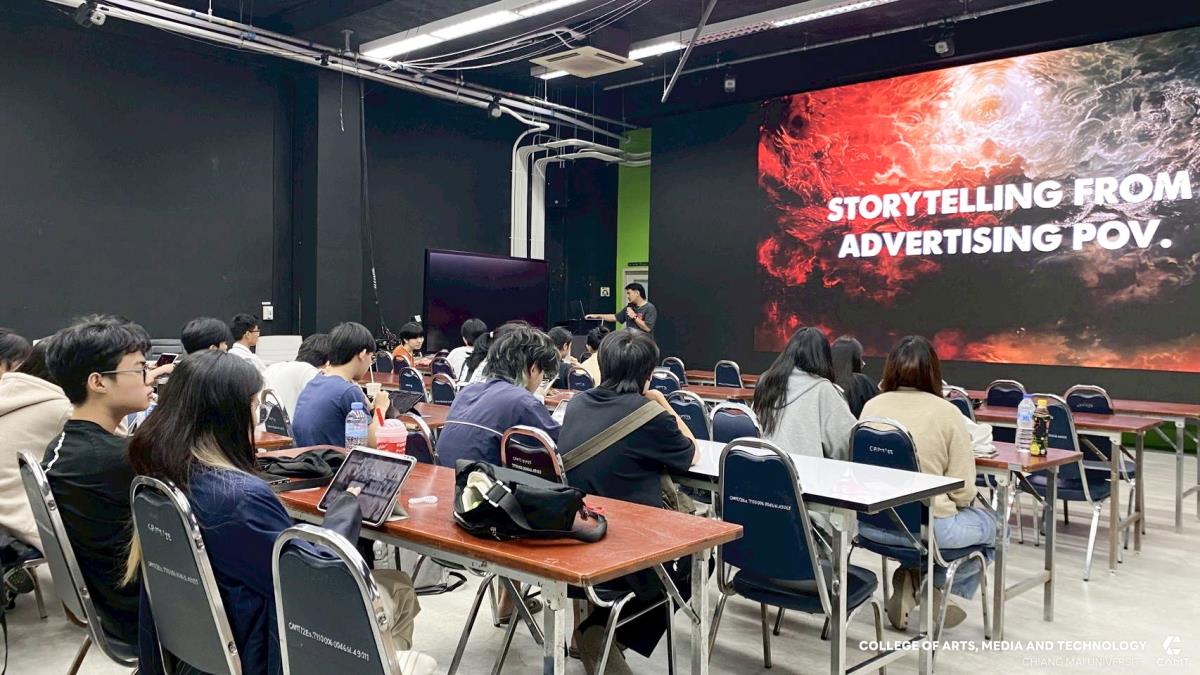 สาขาแอนนิเมชันและวิชวลเอฟเฟกต์ วิทยาลัยศิลปะ สื่อ และเทคโนโลยี มหาวิทยาลัยเชียงใหม่ จัดกิจกรรมบรรยายพิเศษหัวข้อ “Xpert Xperience” เพื่อถ่ายทอดองค์ความรู้และประสบการณ์ตรงด้านการคิดอย่างสร้างสรรค์ (Creativity) ให้แก่นักศึกษาในสาขาแอนนิเมชันและวิชวลเอฟเฟกต์ ซึ่งกิจกรรมดังกล่าวได้รับเกียรติจาก คุณไผ่ ภาคย์ วรรณศิริ ประธานเจ้าหน้าที่บริหารฝ่ายความคิดสร้างสรรค์ (Chief Creative Officer - CCO) บริษัท Wunderman Thompson Thailand ครีเอทีฟรุ่นใหม่ที่มีผลงานโดดเด่นและเป็นที่ยอมรับในวงการ ร่วมเป็นวิทยากรบรรยายพิเศษ เพื่อจุดประกายและเสริมสร้างทักษะการสร้างสรรค์ที่ทันสมัยและเป็นที่ต้องการในอุตสาหกรรมดิจิทัลแก่นักศึกษาอย่างเข้มข้น ซึ่งกิจกรรมนี้เป็นส่วนหนึ่งในรายวิชา 951106: Screenwriting and digital storytelling ภายใต้การดูแลของอาจารย์ ดร.ศุภรดา ประภาวงศ์ อาจารย์ประจำสาขาแอนนิเมชันและวิชวลเอฟเฟกต์ โดยมุ่งเน้นการเชื่อมโยงความรู้ทางวิชาการเข้ากับประสบการณ์จริงจากผู้เชี่ยวชาญในวงการ เพื่อเตรียมความพร้อมให้นักศึกษาได้พัฒนาทักษะที่จำเป็นสำหรับการทำงานในอุตสาหกรรมภาพยนตร์และแอนนิเมชันได้อย่างมีประสิทธิภาพในอนาคต เมื่อวันที่ 11 ตุลาคม 2568 ณ ห้อง112 อาคารวิทยาลัยศิลปะ สื่อ และเทคโนโลยี มหาวิทยาลัยเชียงใหม่