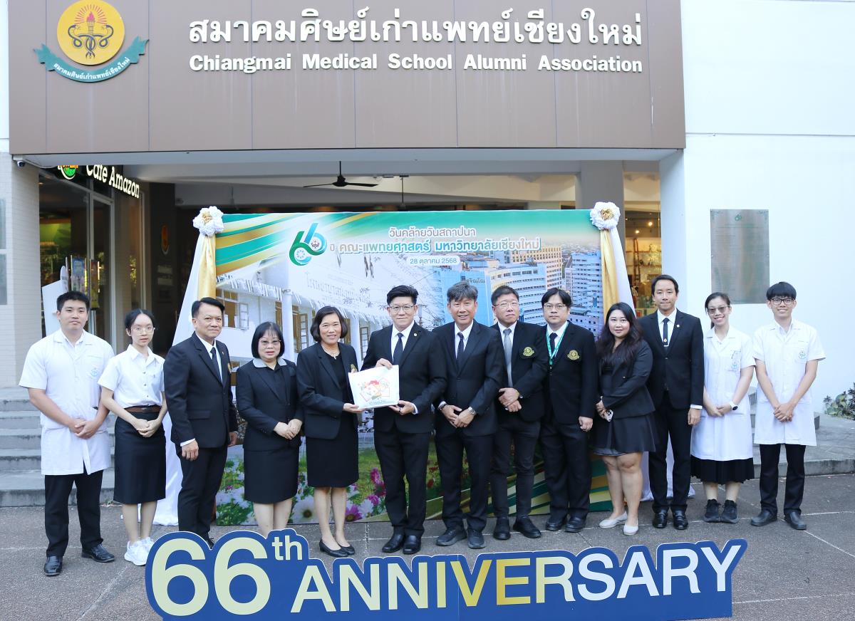 ผู้ช่วยศาสตราจารย์ ดร.สุภารัตน์ วังศรีคูณ คณบดี และ ผู้ช่วยศาสตราจารย์ ดร.จันทร์ฉาย โยธาใหญ่ รองคณบดี คณะพยาบาลศาสตร์ มหาวิทยาลัยเชียงใหม่ ร่วมแสดงความยินดีในโอกาสวันคล้ายวันสถาปนาคณะแพทยศาสตร์ มหาวิทยาลัยเชียงใหม่ ประจำปี 2568 (ครบรอบ 66 ปี) ในโอกาสนี้ได้มอบเงินเพื่อสมทบกองทุนพัฒนาคณะแพทยศาสตร์ โดยมี รองศาสตราจารย์ นพ.นเรนทร์ โชติรสนิรมิต คณบดี พร้อมด้วยคณะผู้บริหาร คณะแพทยศาสตร์ มหาวิทยาลัยเชียงใหม่ ให้การต้อนรับอย่างอบอุ่น ณ สมาคมศิษย์เก่าแพทย์เชียงใหม่ คณะแพทยศาสตร์ เมื่อวันอังคารที่ 28 ตุลาคม 2568