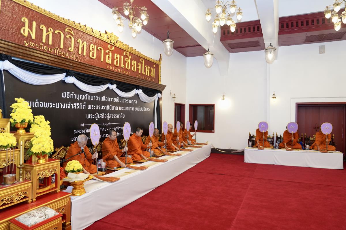 โดยมหาวิทยาลัยเชียงใหม่จะจัดพิธีทำบุญตักบาตรเพื่อถวายเป็นพระราชกุศล สมเด็จพระนางเจ้าสิริกิติ์ พระบรมราชินีนาถ พระบรมราชชนนีพันปีหลวง พระผู้เสด็จสู่สวรรคาลัยติดต่อกันเป็นเวลา 7 วัน ระหว่างวันอาทิตย์ที่ 26 ตุลาคม ถึงวันเสาร์ที่ 1 พฤศจิกายน 2568 เวลา 07.30 น. ณ ศาลาธรรม มหาวิทยาลัยเชียงใหม่ มีพระสงฆ์จำนวน 10 รูป จาก 7 วัด ร่วมพิธี