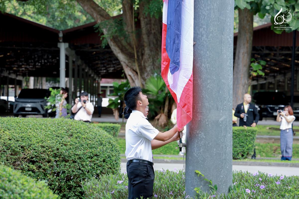 ผู้ช่วยศาสตราจารย์ ดร.ศุภฤกษ์ โพธิไพรัตนา คณบดีคณะการสื่อสารมวลชน มหาวิทยาลัยเชียงใหม่ พร้อมด้วย อาจารย์นฤมล ธรรมพฤกษา ผู้ช่วยคณบดีด้านพัฒนาคุณภาพนักศึกษา และ ดร.ปิยะวัน จันทราภานนท์ เลขานุการคณะการสื่อสารมวลชน เข้าร่วมกิจกรรมเคารพธงชาติไทยและร้องเพลงชาติไทย เนื่องในวันพระราชทานธงชาติไทย (Thai National Flag Day) ครบรอบ 108 ปี ธงไตรรงค์ ณ บริเวณเสาธง ด้านหน้ามหาวิทยาลัยเชียงใหม่ ในวันจันทร์ที่ 29 กันยายน 2568 เวลา 07.30 – 08.00 น.