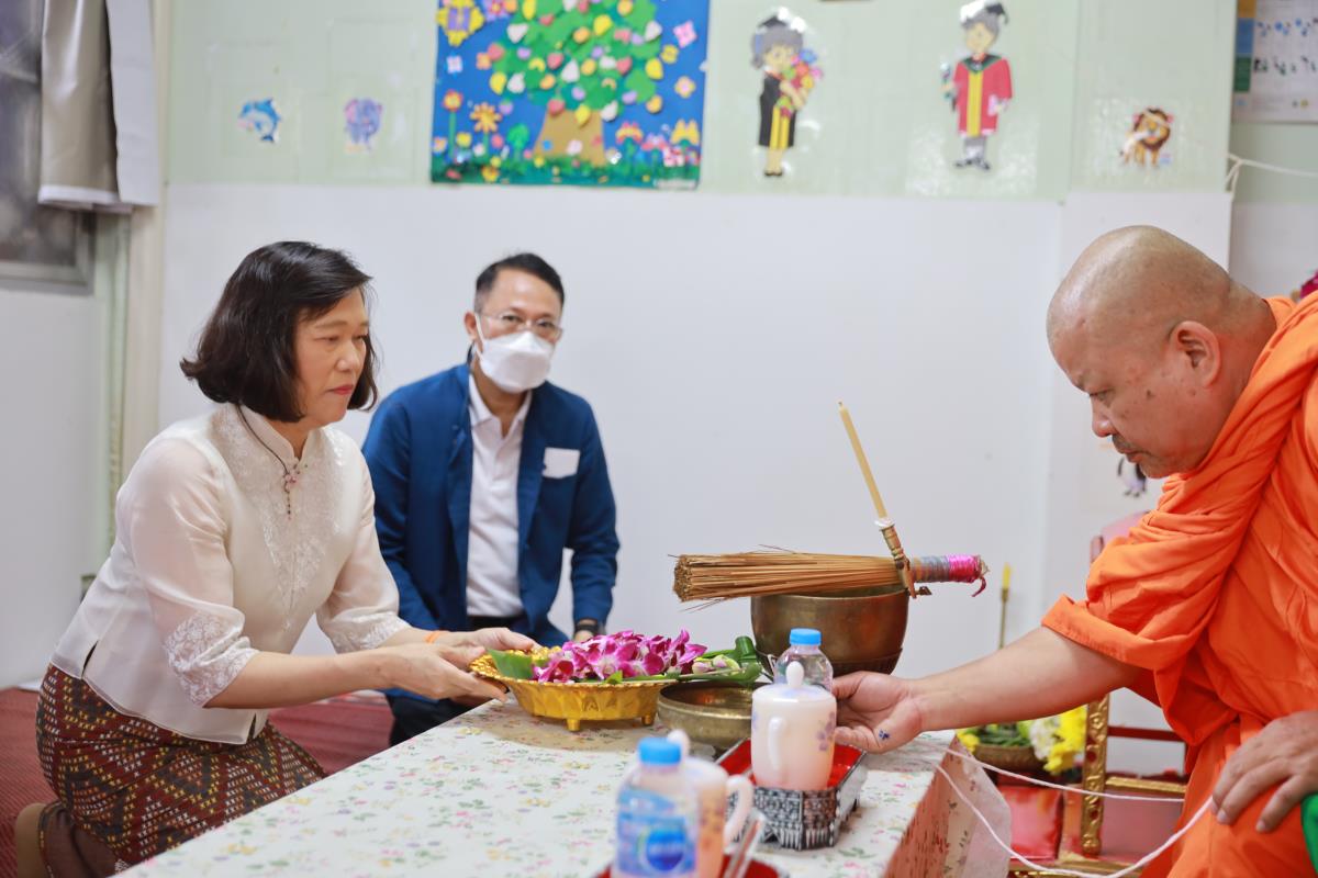 ผู้ช่วยศาสตราจารย์ ดร.สุภารัตน์ วังศรีคูณ คณบดีคณะพยาบาลศาสตร์ มหาวิทยาลัยเชียงใหม่ พร้อมด้วย ศาสตราจารย์คลินิก ดร.พรรณพิไล ศรีอาภรณ์ ผู้อำนวยการศูนย์บริการพยาบาล คณะผู้บริหาร คณาจารย์ บุคลากร และผู้ปกครอง ร่วมพิธีบวงสรวงศาลพระภูมิและทำบุญหน่วยสาธิตการสร้างเสริมสุขภาพเด็กเล็ก คณะพยาบาลศาสตร์ มหาวิทยาลัยเชียงใหม่ โดยมี พระครูศรีสุตโสภณ ดร. ผู้อำนวยการโรงเรียนอภัยอริยศึกษา วัดดับภัย จังหวัดเชียงใหม่ เป็นประธานฝ่ายสงฆ์ประกอบพิธีทางศาสนา เพื่อเสริมสร้างความเป็นสิริมงคล เจริญก้าวหน้ารุ่งเรือง บำรุงขวัญกำลังใจในการปฏิบัติงาน และสืบสานขนบธรรมเนียมอันดีงามของไทย เมื่อวันพฤหัสบดีที่ 25 กันยายน 2568
