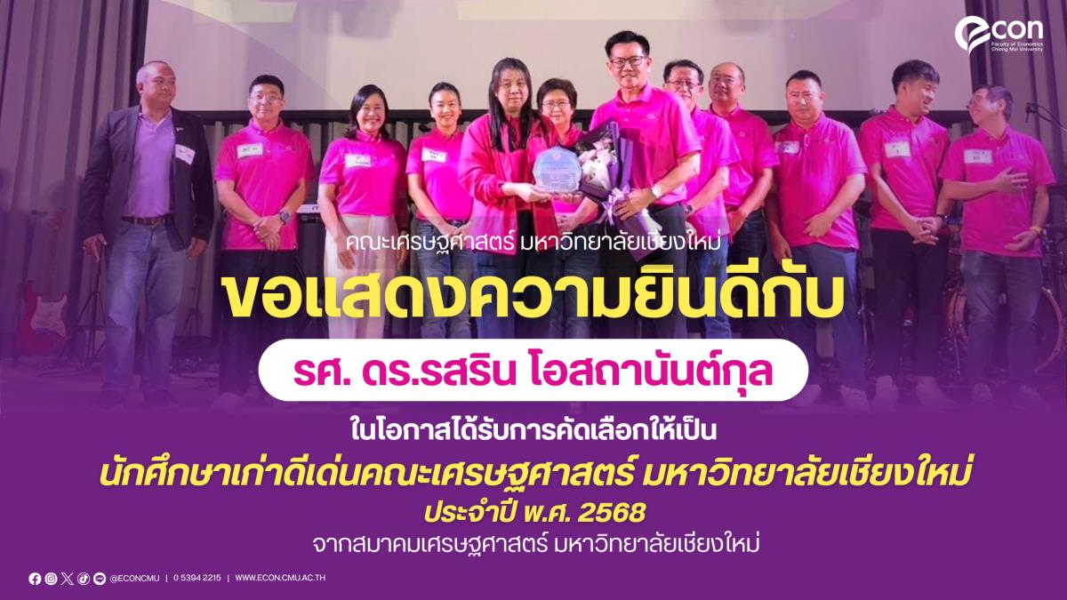 รศ. ดร.รสริน โอสถานันต์กุล ได้รับการคัดเลือกให้เป็น “นักศึกษาเก่าดีเด่นคณะเศรษฐศาสตร์ มหาวิทยาลัยเชียงใหม่ ประจำปี 2568”