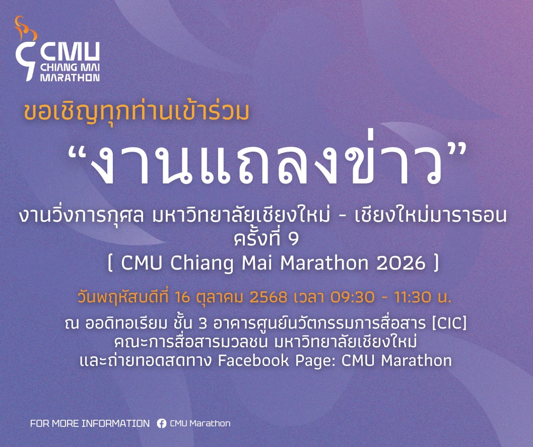 งานแถลงข่าว งานวิ่งการกุศล มหาวิทยาลัยเชียงใหม่ - เชียงใหม่มาราธอน ครั้งที่ 9 (CMU Chiang Mai Marathon 2026) .