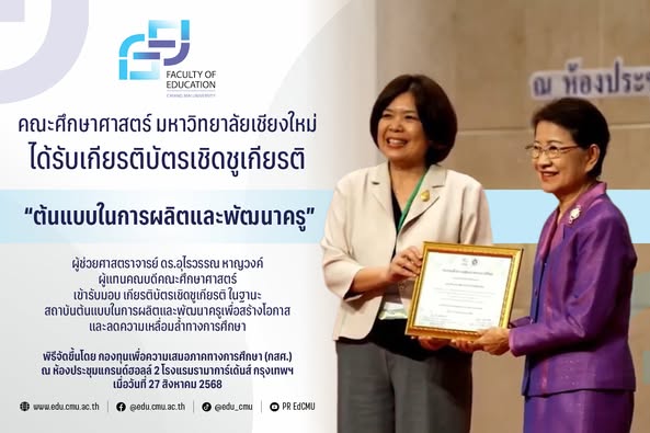 คณะศึกษาศาสตร์ มหาวิทยาลัยเชียงใหม่ ได้รับเกียรติบัตรเชิดชูเกียรติ “ต้นแบบในการผลิตและพัฒนาครู”