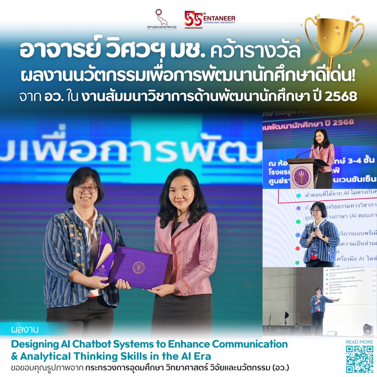 อาจารย์ วิศวฯ มช. คว้ารางวัลผลงานนวัตกรรมเพื่อการพัฒนานักศึกษาดีเด่น! จาก อว. ในงานสัมมนาวิชาการด้านพัฒนานักศึกษา ปี 2568