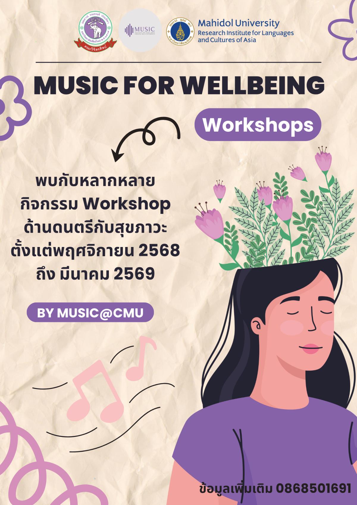 ขอเชิญผู้สนใจ ด้านดนตรีบำบัด และการใช้ดนตรีเพื่อการส่งเสริมสุขภาวะ ร่วมอบรมเชิงปฏิบัติการให้ตัวข้อต่าง ๆ ระหว่างระหว่างเดือน พฤศจิกายน 2568 ถึง เดือน มีนาคม 2569