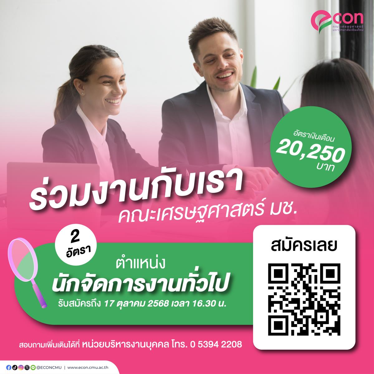 คณะเศรษฐศาสตร์ มช. เปิดรับสมัครตำแหน่งนักจัดการงานทั่วไป