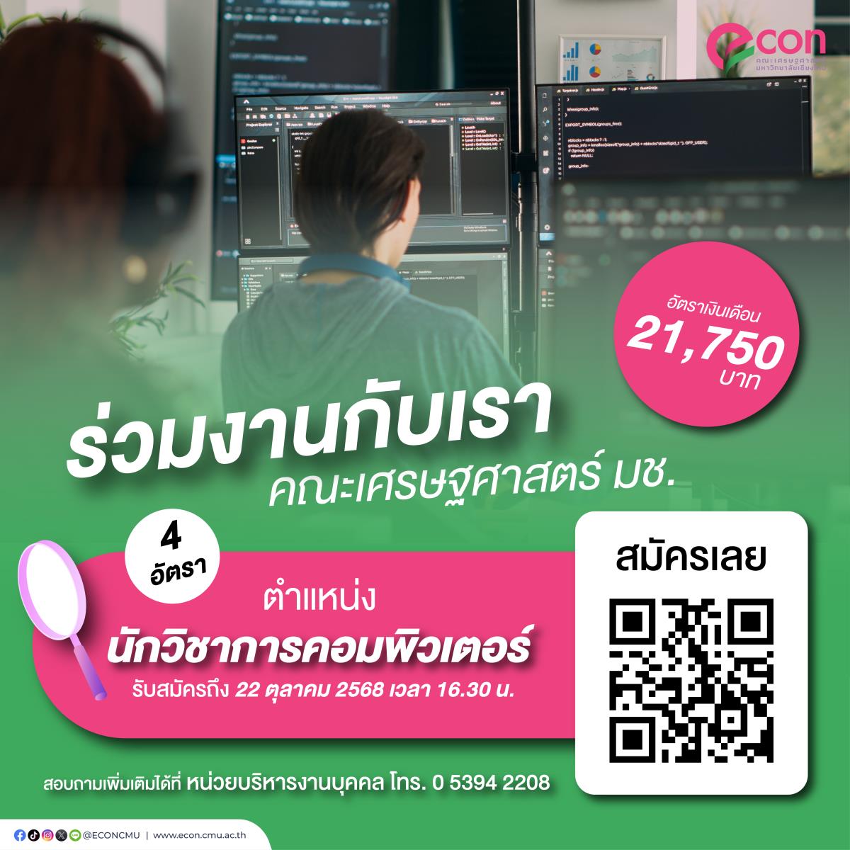 คณะเศรษฐศาสตร์ มช. เปิดรับสมัครนักวิชการคอมพิวเตอร์ จำนวน 4 อัตรา