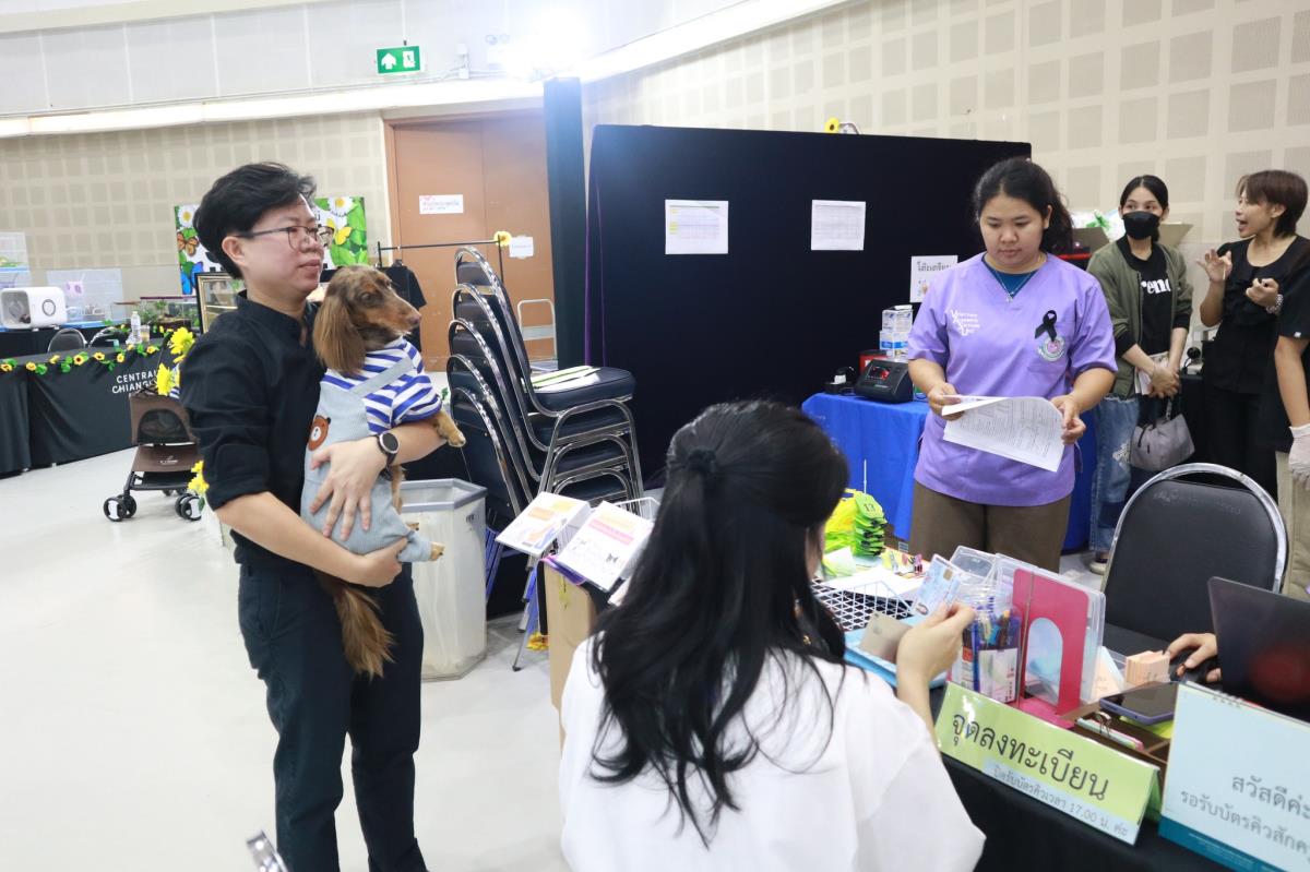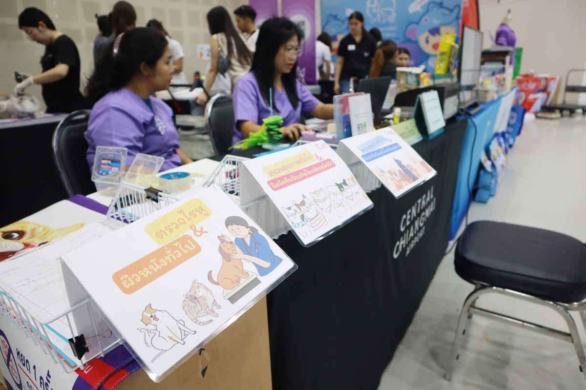 คณะสัตวแพทยศาสตร์ มหาวิทยาลัยเชียงใหม่ นำโดย ผศ. ดร. สพ.ญ.วรางคณา ไชยซาววงษ์ ผู้ช่วยคณบดีฝ่ายบริการวิชาการและการศึกษาตลอดชีวิต พร้อมด้วยคณาจารย์ สัตวแพทย์ นักศึกษาสัตวแพทย์ และบุคลากรของคณะฯ ร่วมออกบูธให้บริการตรวจสุขภาพสัตว์เลี้ยง ภายในงาน Petmart Fair 2025 ระหว่างวันที่ 30 – 31 ตุลาคม และ 1 – 2 พฤศจิกายน 2568 ณ เชียงใหม่ฮอลล์ ศูนย์การค้าเซ็นทรัล เชียงใหม่ แอร์พอร์ต ภายในบูธมีการให้บริการ ตรวจสุขภาพสัตว์เลี้ยงเบื้องต้น ฉีดวัคซีนป้องกันโรคพิษสุนัขบ้า และตรวจช่องหู โดยไม่คิดค่าใช้จ่าย เพื่อส่งเสริมให้ประชาชนตระหนักถึงการดูแลสุขภาพสัตว์เลี้ยงอย่างถูกวิธี และสร้างเสริมสุขภาวะที่ดีของสัตว์ในชุมชน