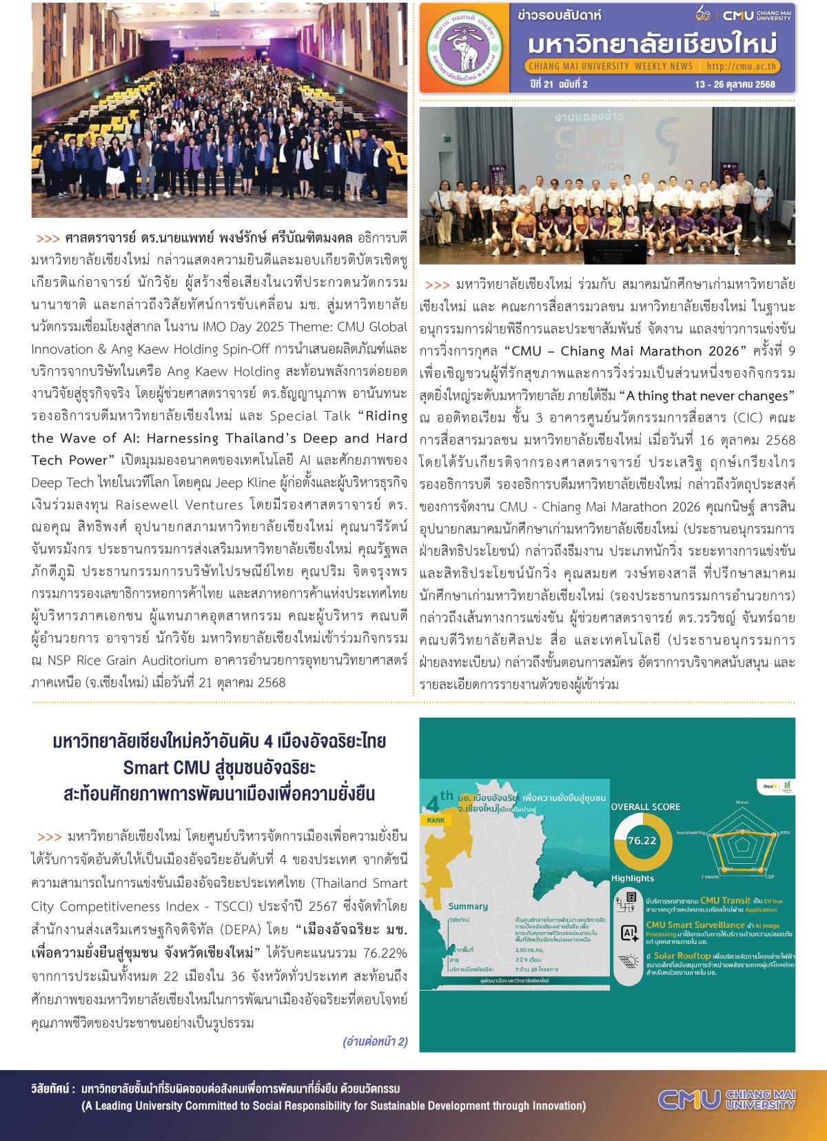 มหาวิทยาลัยเชียงใหม่ มุ่งสู่การเป็นมหาวิทยาลัยชั้นนำ ที่รับผิดชอบต่อสังคม เพื่อการพัฒนาที่ยั่งยืน ด้วยนวัตกรรม